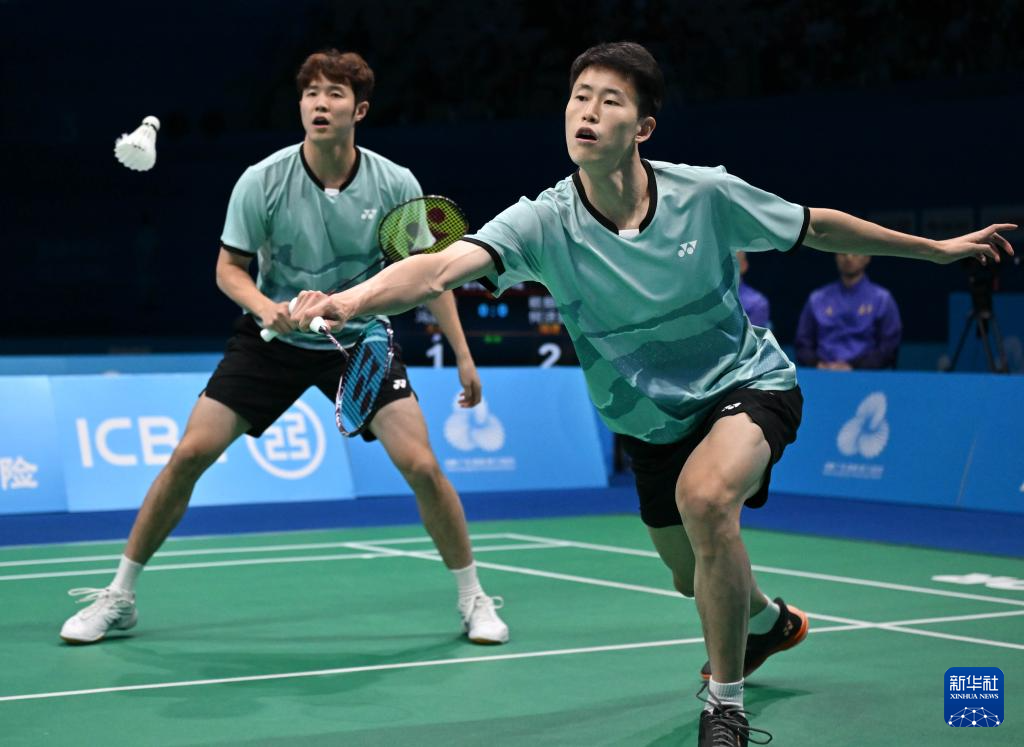 11月19日,福建队组合欧烜屹(前)/何济霆在比赛中。