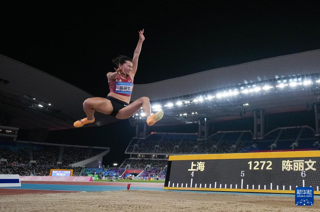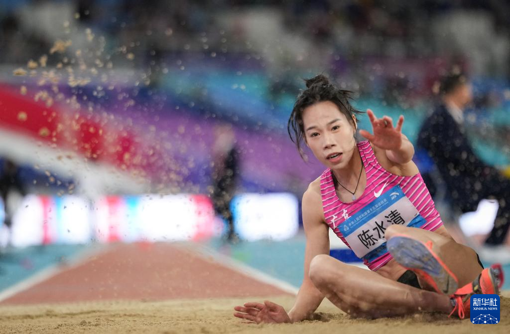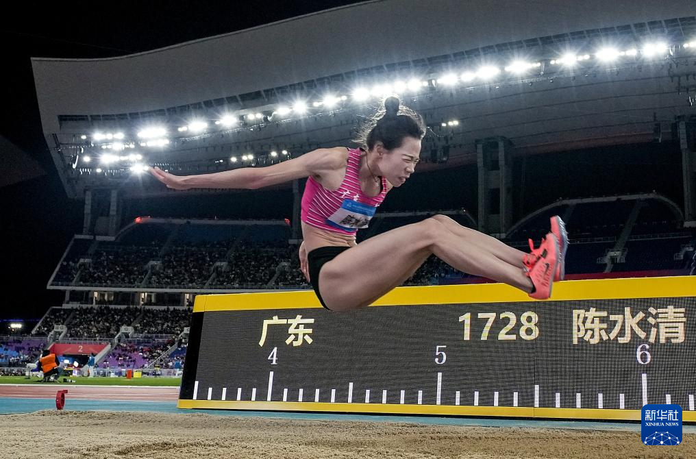 当日,第十五届全国运动会田径项目女子跳远决赛在广州举行。