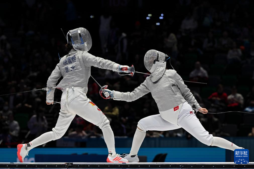 11月19日,山东队选手白文秀(右)和湖北队选手饶雪怡在比赛中。