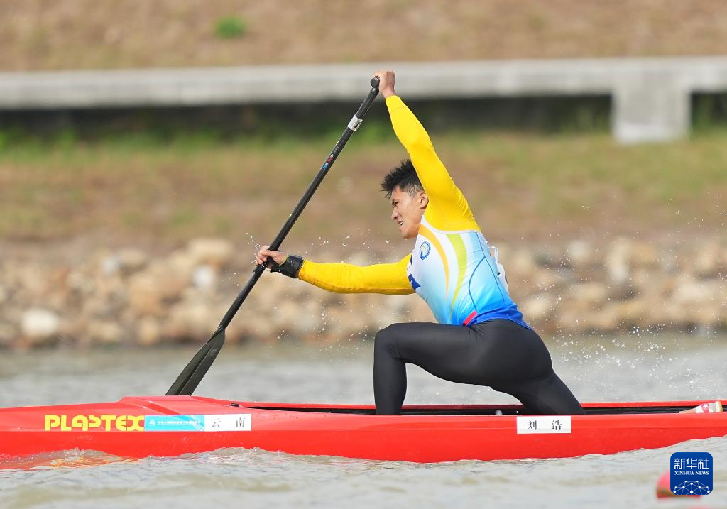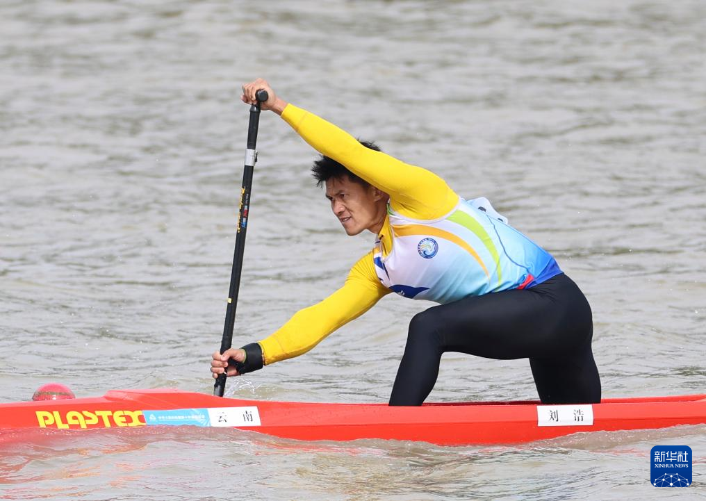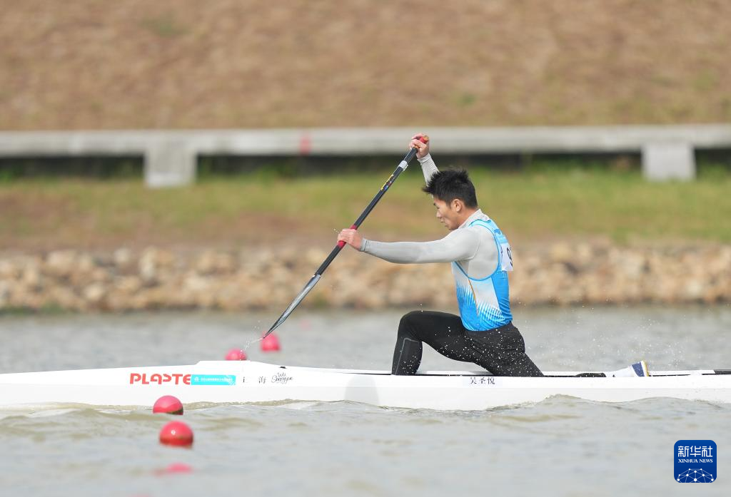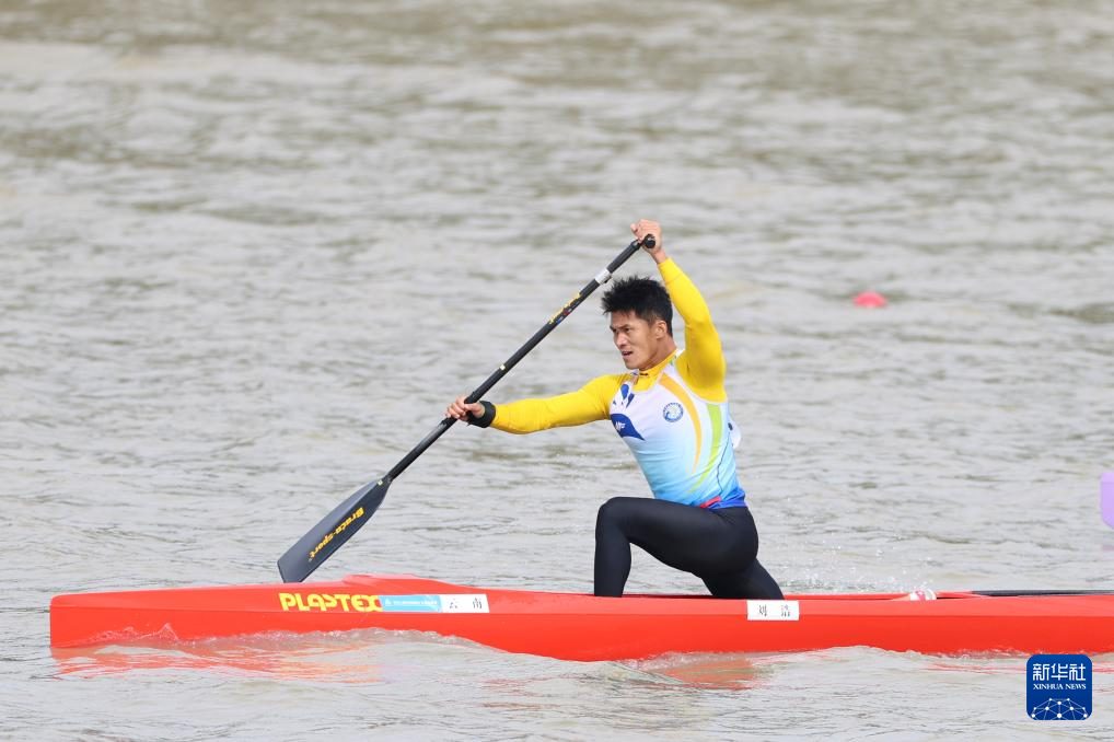 当日,第十五届全国运动会皮划艇静水项目男子1000米单人划艇决赛在广州举行。
