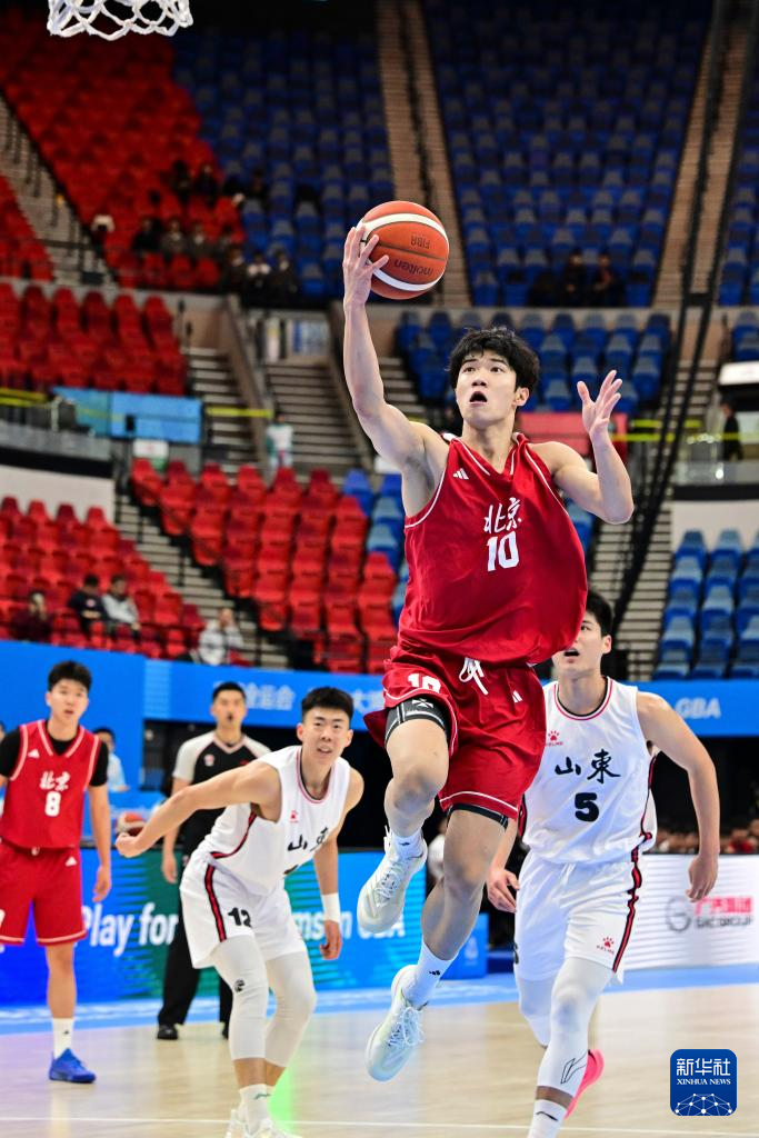 11月19日,北京队球员偰李永伟(前)在比赛中上篮。