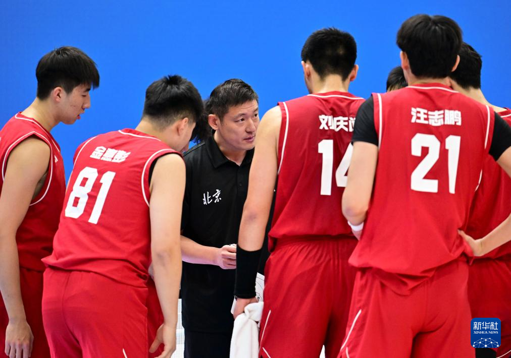 11月19日,北京队主教练陈磊(中)赛前指导队员。