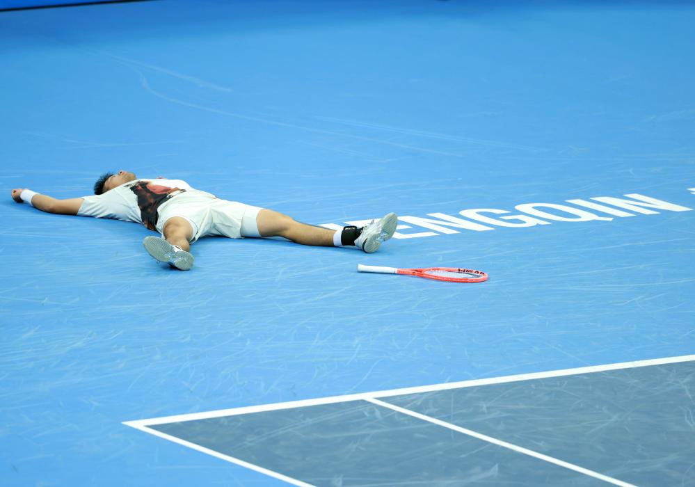 新华社珠海11月19日电(记者乐文婉、杨帆)鏖战2小时47分钟,以2:1逆转香港新星黄泽林后,浙江队名将吴易昺扔掉球拍,躺倒在地,久久没有起身。