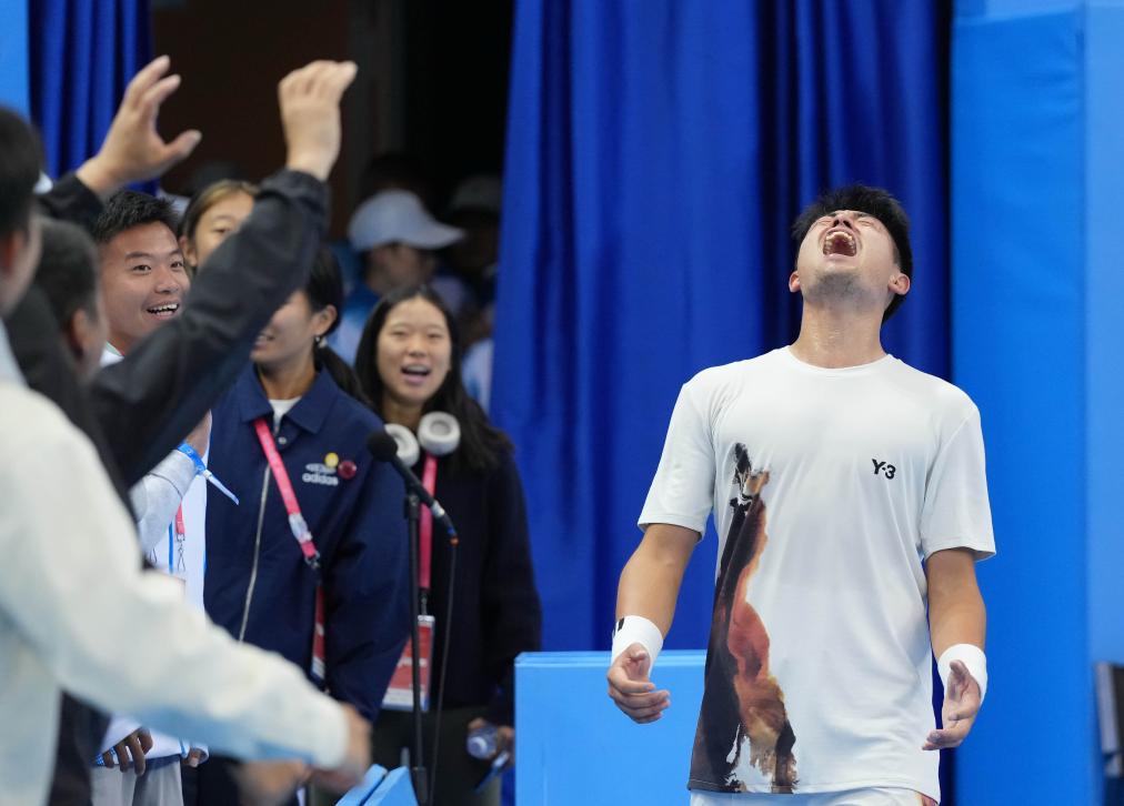 11月19日,浙江队选手吴易昺在比赛胜利后。新华社记者 张晨霖 摄