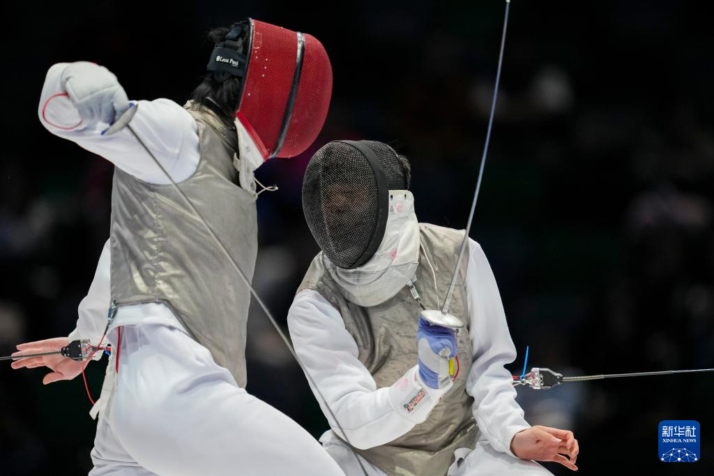 11月19日,上海队选手蔡金珲(左)和江苏队选手强璐敏在比赛中。