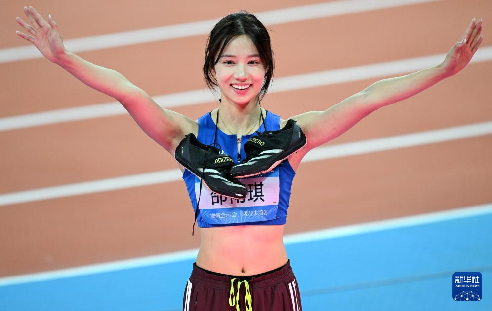 当日,第十五届全国运动会田径项目女子跳高决赛在广州举行。