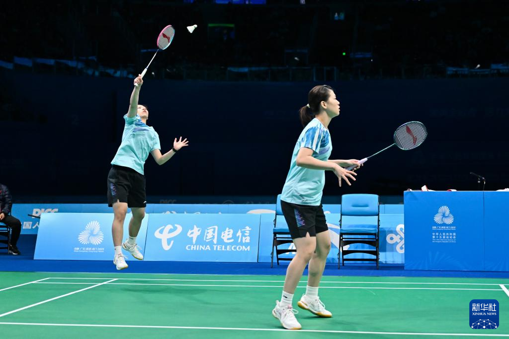 11月19日,广东队组合李怡婧(右)/罗徐敏在比赛中。