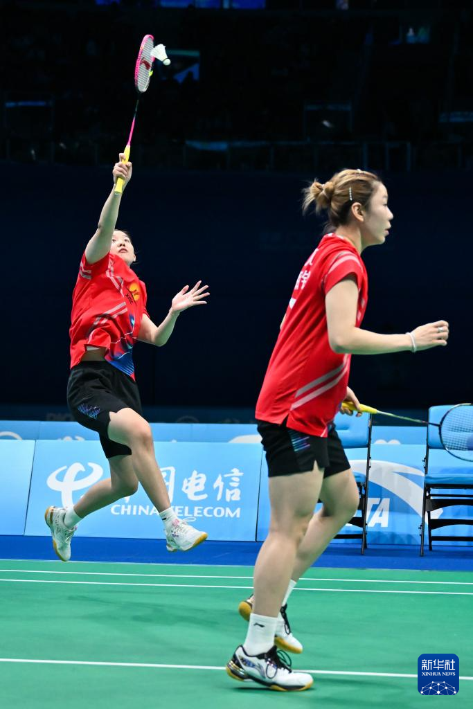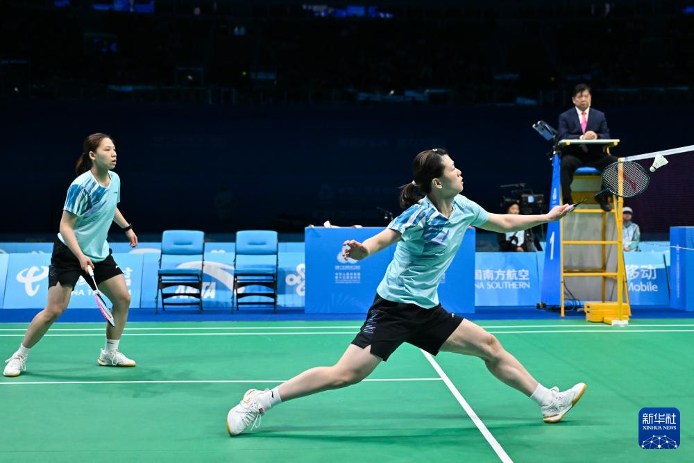 11月19日,广东队组合李怡婧/罗徐敏(右)在比赛中。