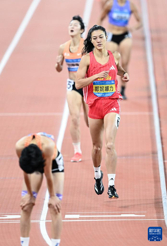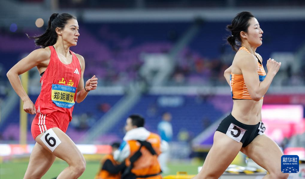 11月19日,山西队选手郑妮娜力(右)在比赛中冲线。