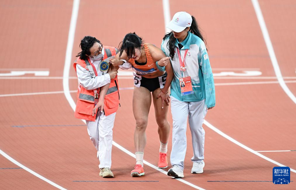 11月19日,浙江队选手刘静逸(中)在比赛后被搀扶出场。