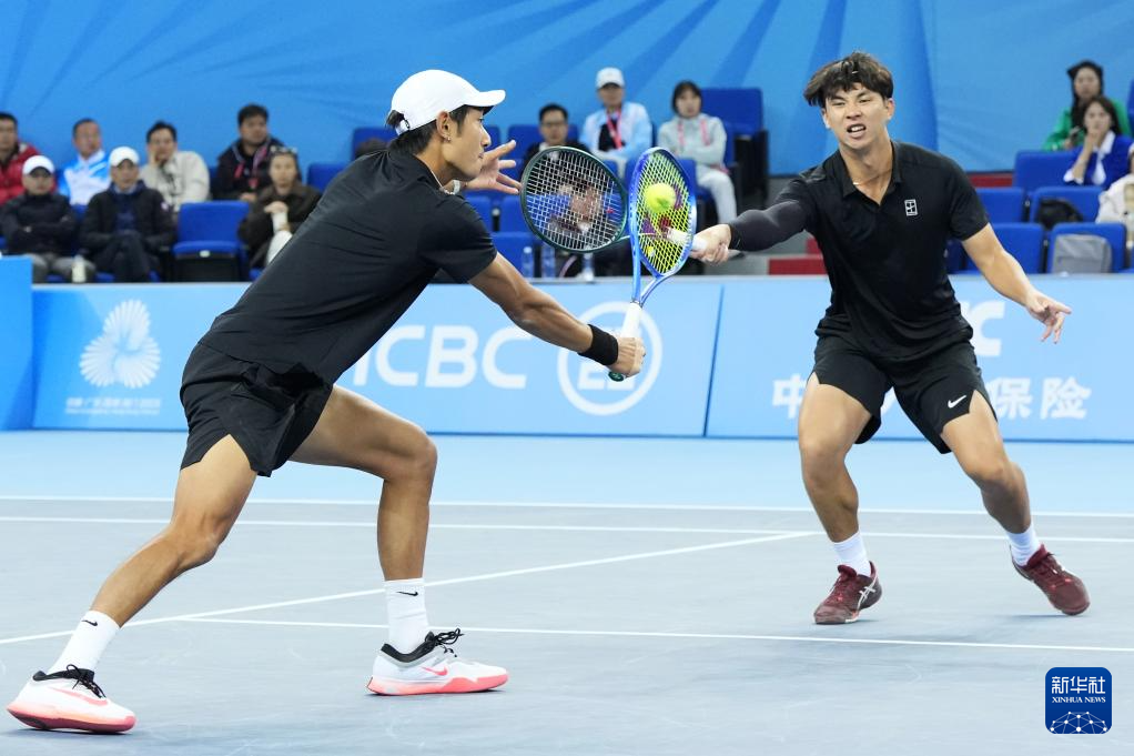 11月19日,浙江队组合布云朝克特(右)/郑展在比赛中。