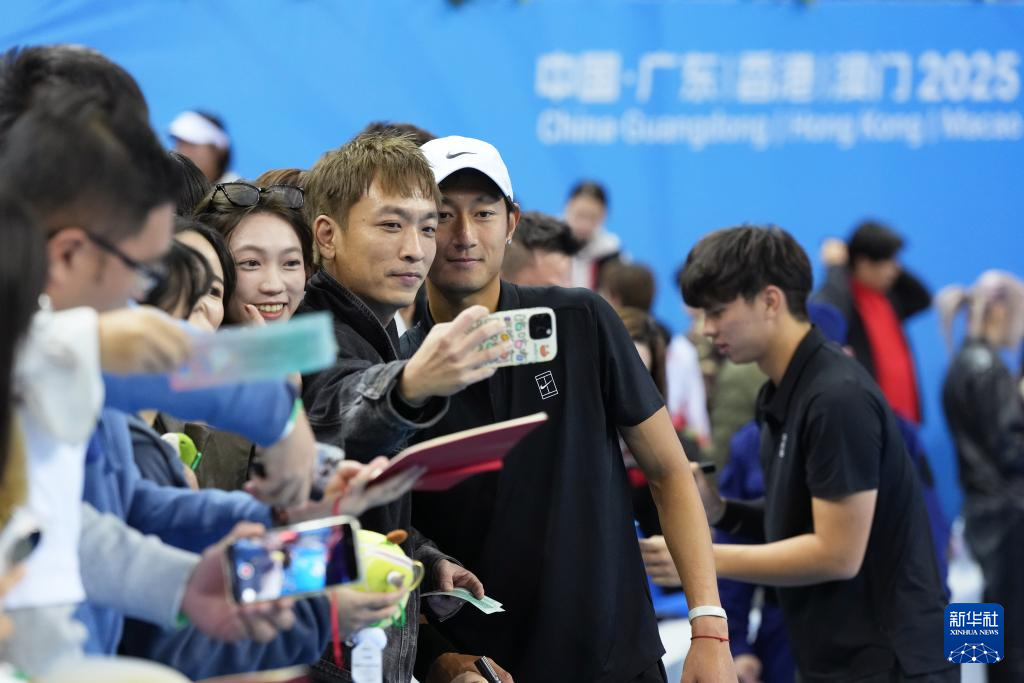 11月19日,江苏队球员孙浅在获胜后与观众合影。