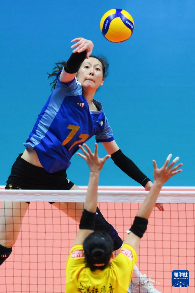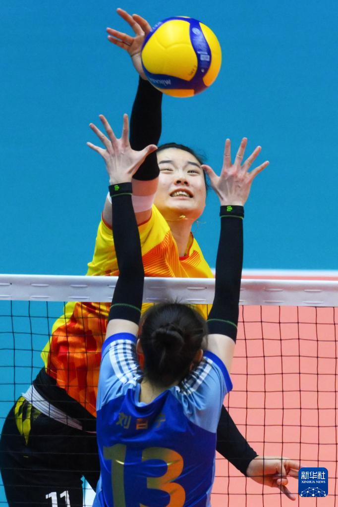 11月19日,上海队球员仲慧(上)在比赛中进攻。