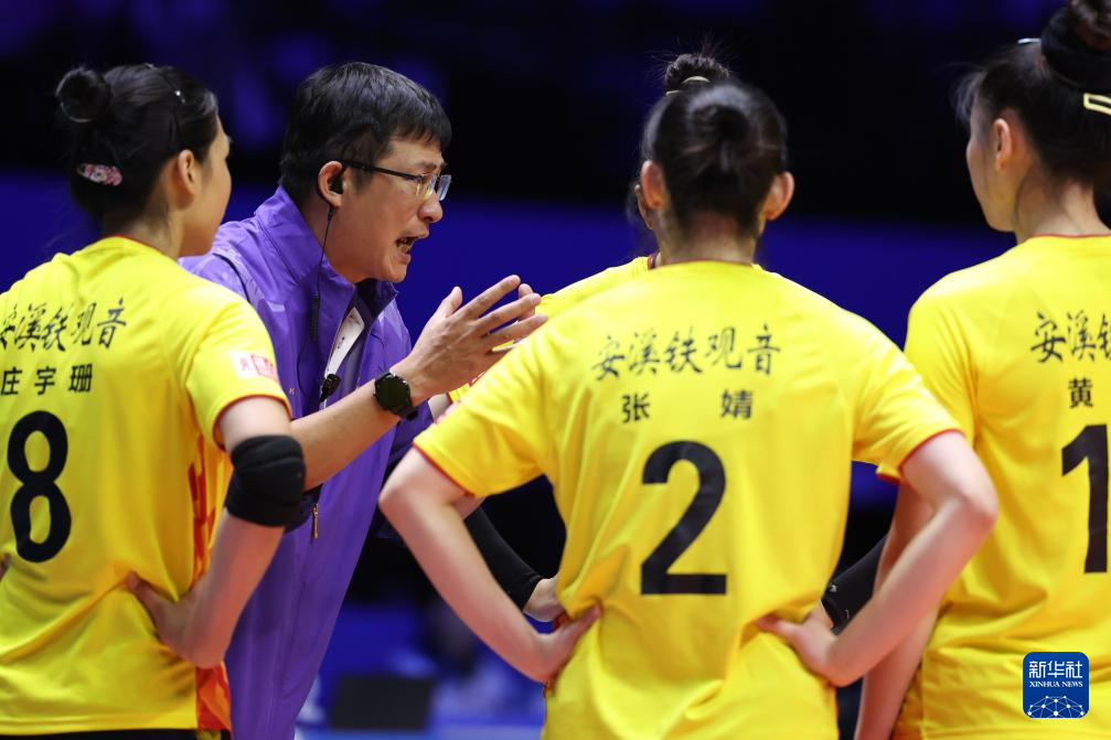 11月19日,福建队主教练沈泽(左二)在比赛暂停时间布置战术。