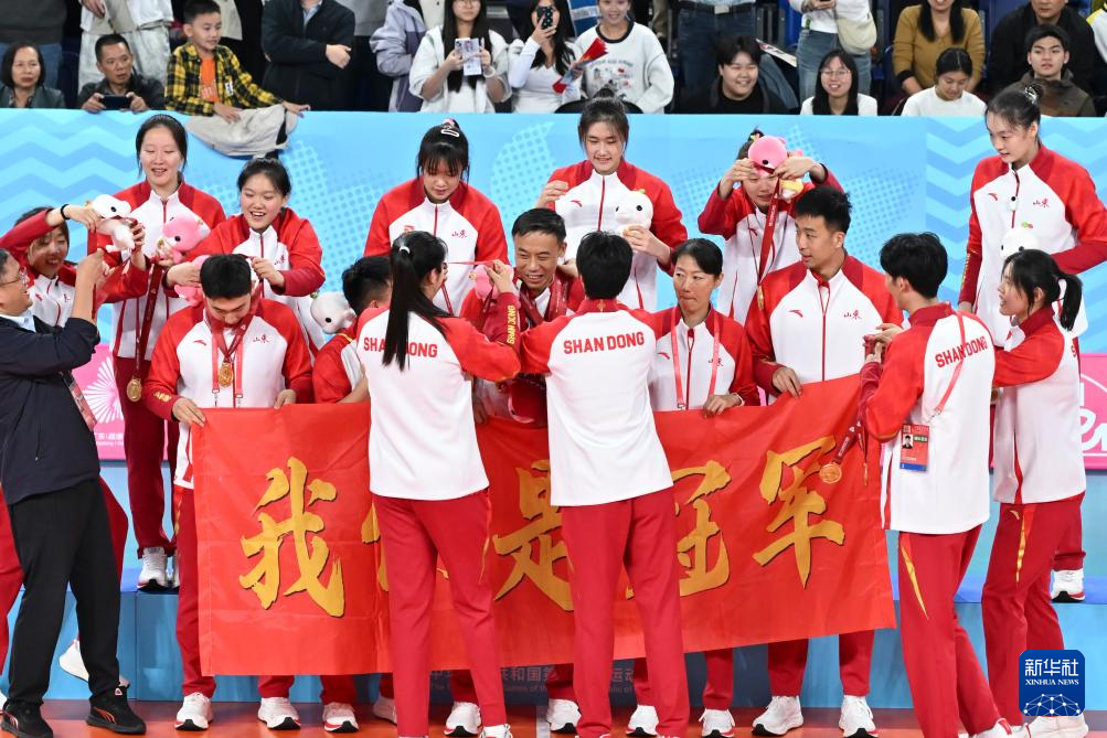 当日,在广东江门进行的第十五届全国运动会排球女子20岁以下组冠亚军决赛中,山东队3比1战胜上海队,夺得冠军。