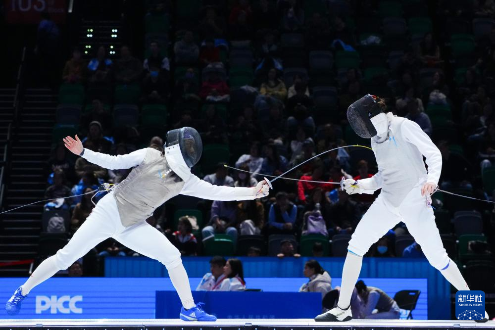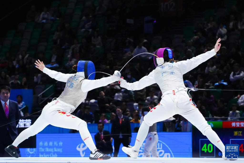 11月20日,江苏队选手石玥(左)和广东队选手宋玥在比赛中。