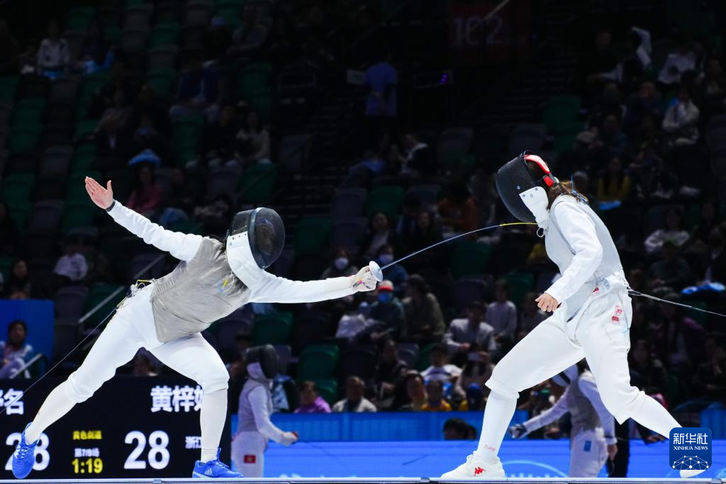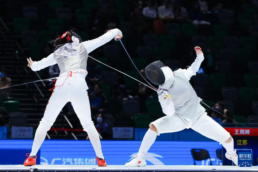 11月20日,江苏队选手王雨婷(左)和广东队选手吴培林在比赛中。