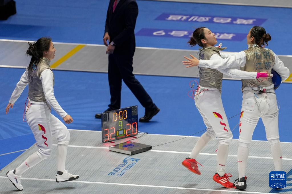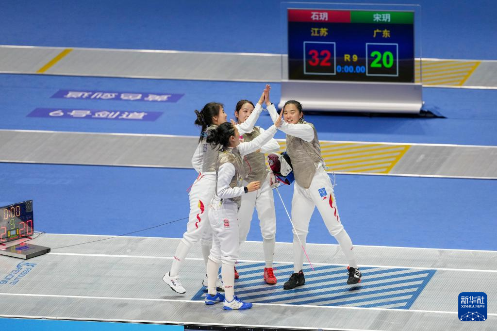 当日,在香港进行的第十五届全国运动会女子花剑团体铜牌赛中,江苏队32比20战胜广东队,获得铜牌。