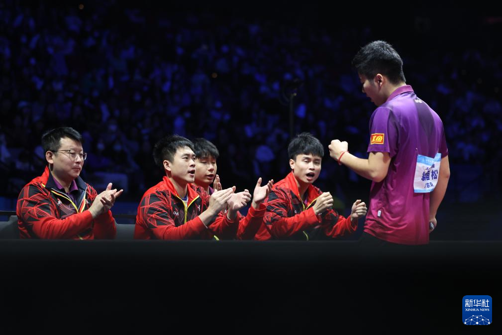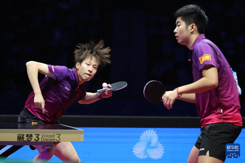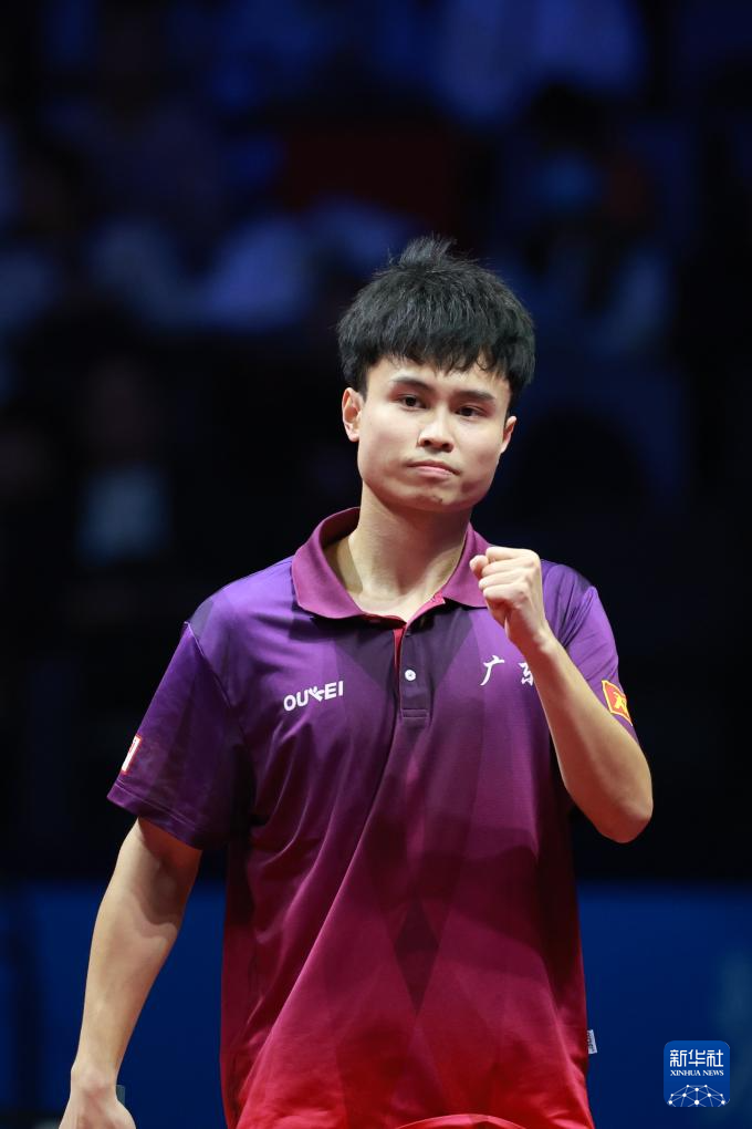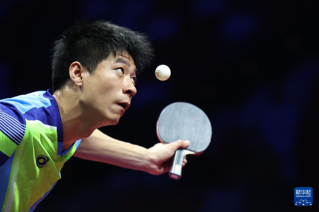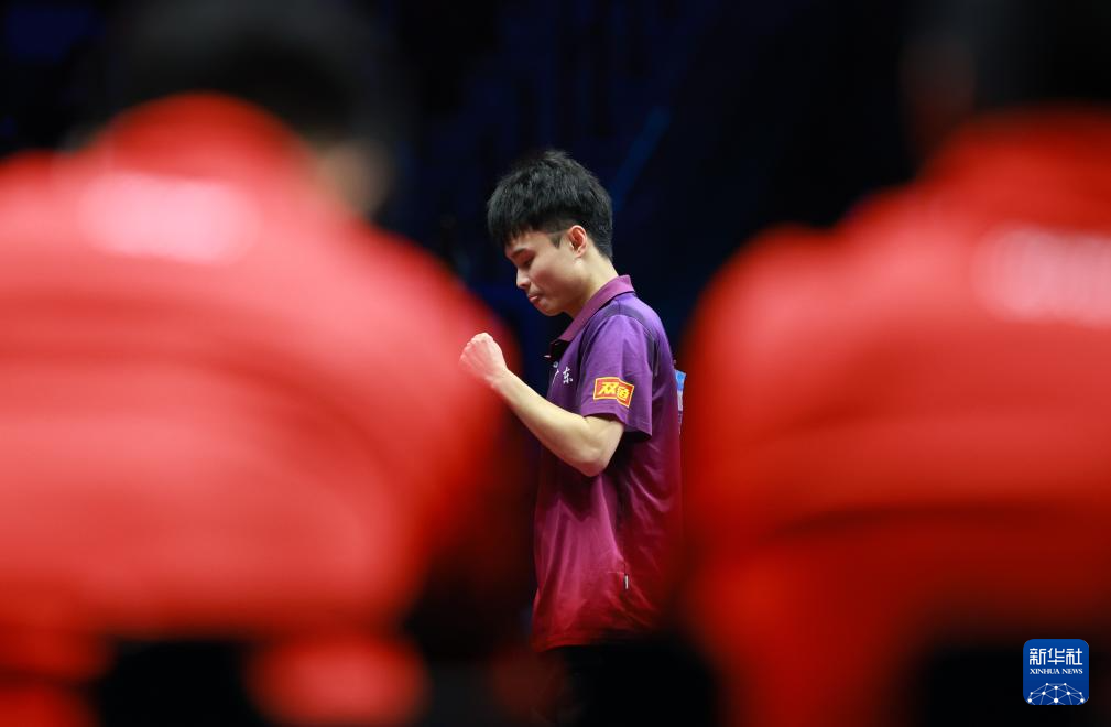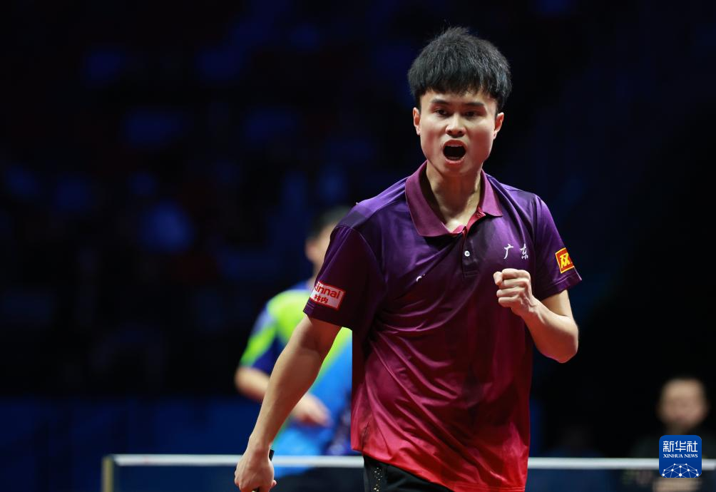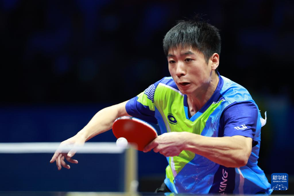 11月20日,广东队选手周启豪在比赛中回球,他3比1战胜黑龙江队选手魏世皓。