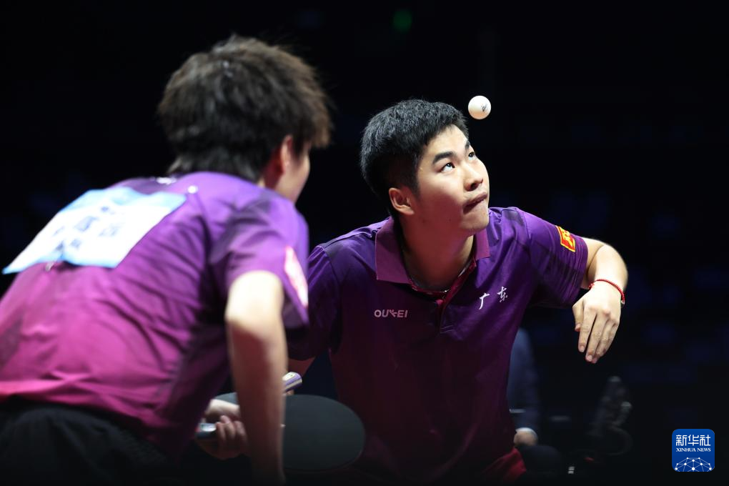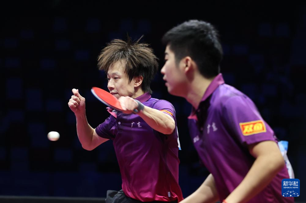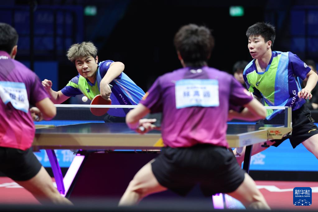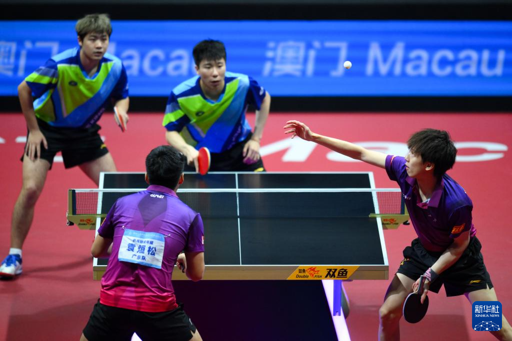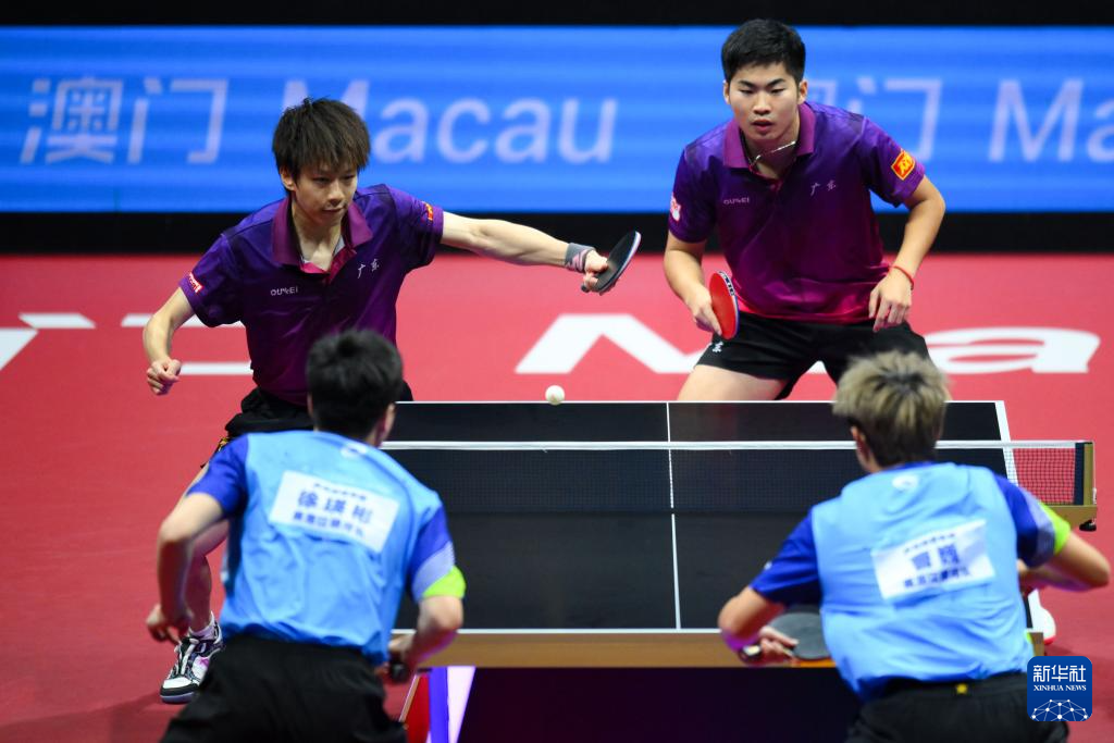 11月20日,广东队组合林高远(左)/袁烜松在比赛中,他们3比1战胜黑龙江队组合徐瑛彬/曹巍。