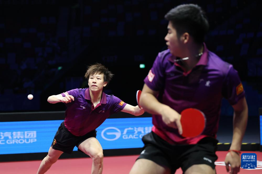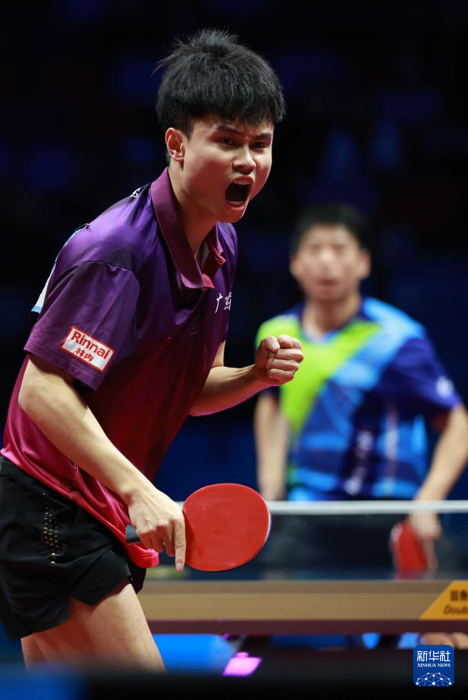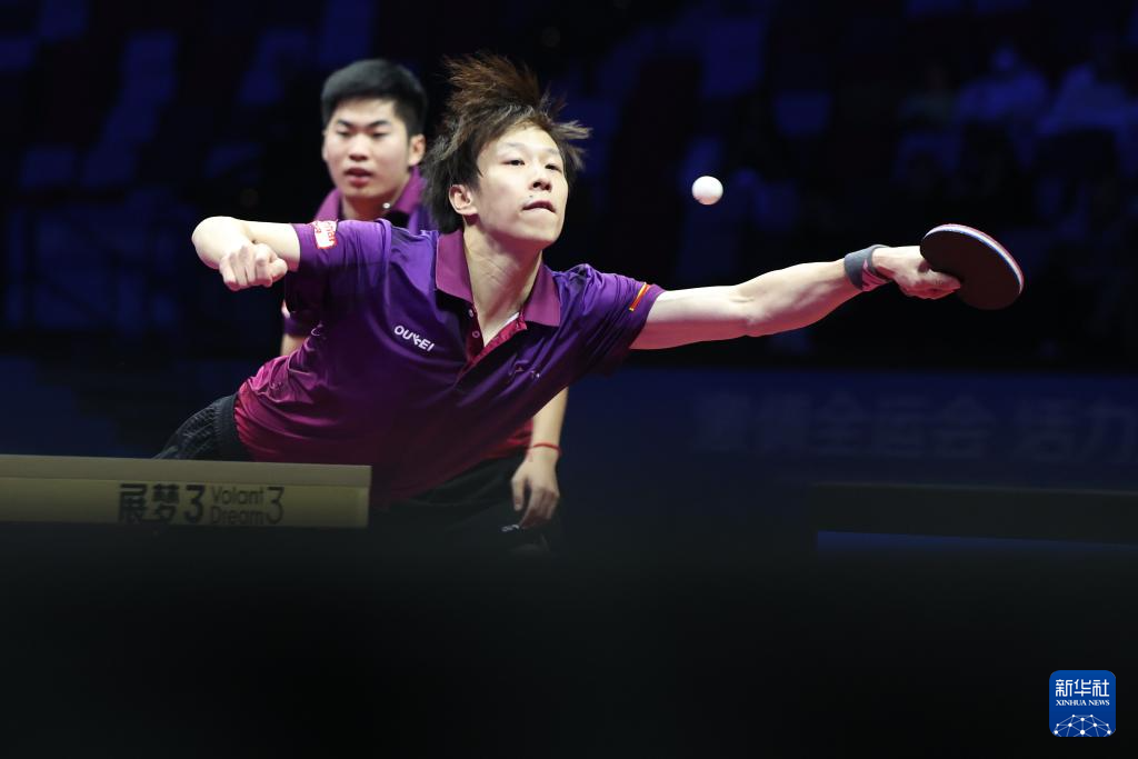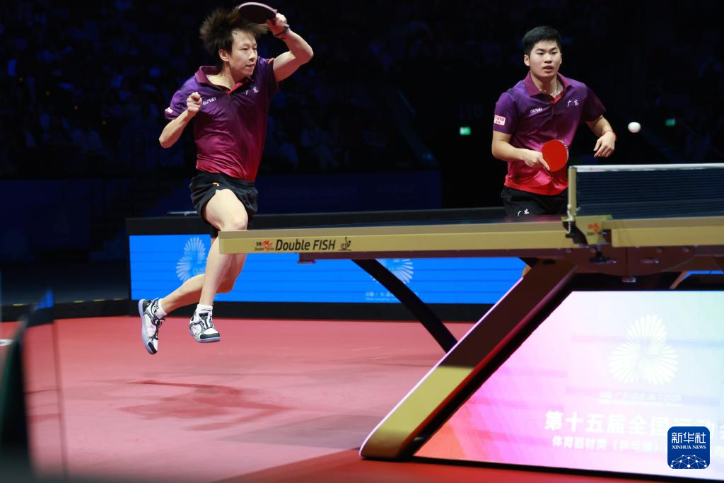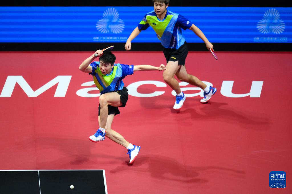 11月20日,广东队组合林高远(左)/袁烜松在比赛中,他们3比1战胜黑龙江队组合徐瑛彬/曹巍。