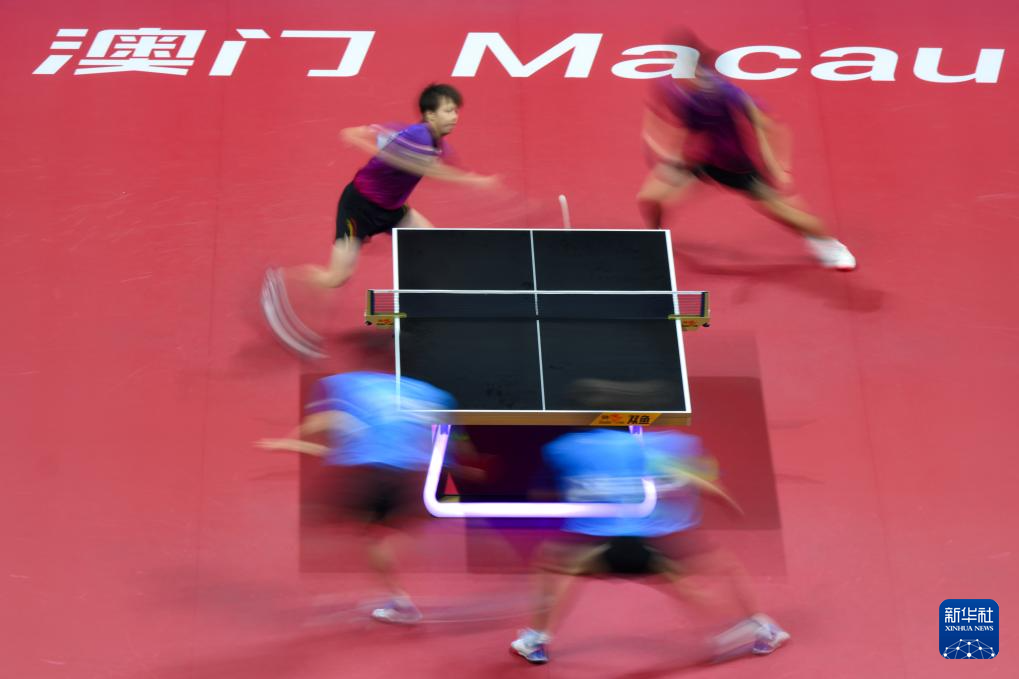 11月20日,黑龙江队选手徐瑛彬/曹巍(左二)在比赛中,他们1比3不敌广东队选手林高远/袁烜松。