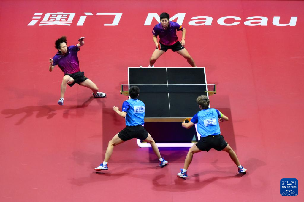 11月20日,广东队组合林高远(上左)/袁烜松在比赛中,他们3比1战胜广东队组合徐瑛彬/曹巍。
