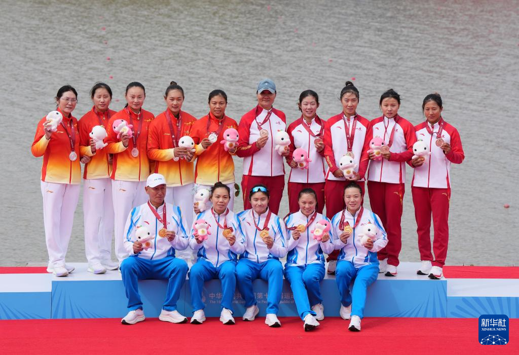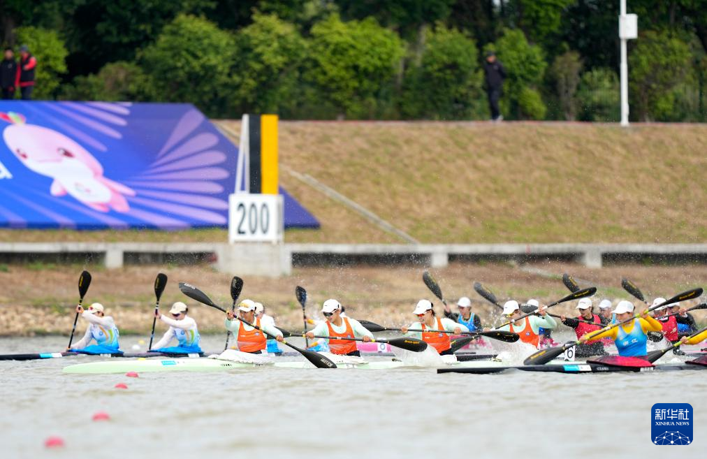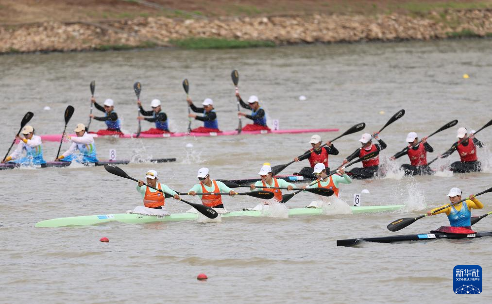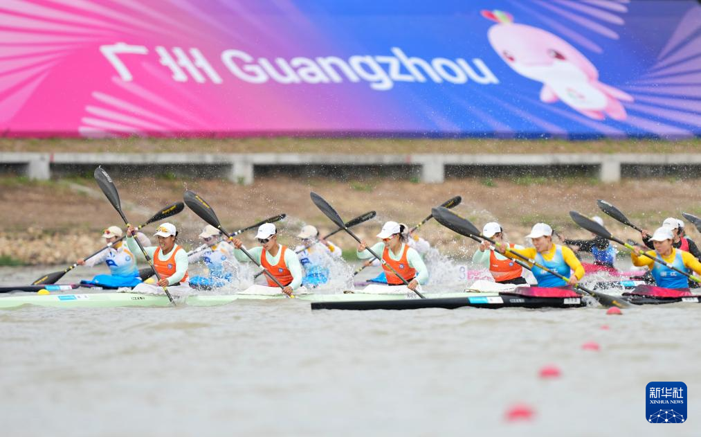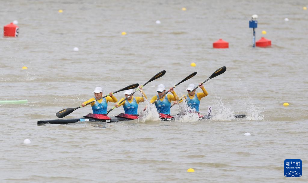 当日,第十五届全国运动会皮划艇静水项目女子500米四人皮艇决赛在广州举行。
