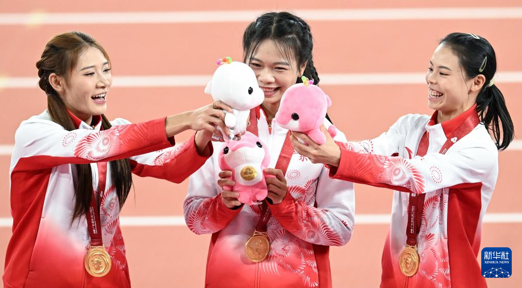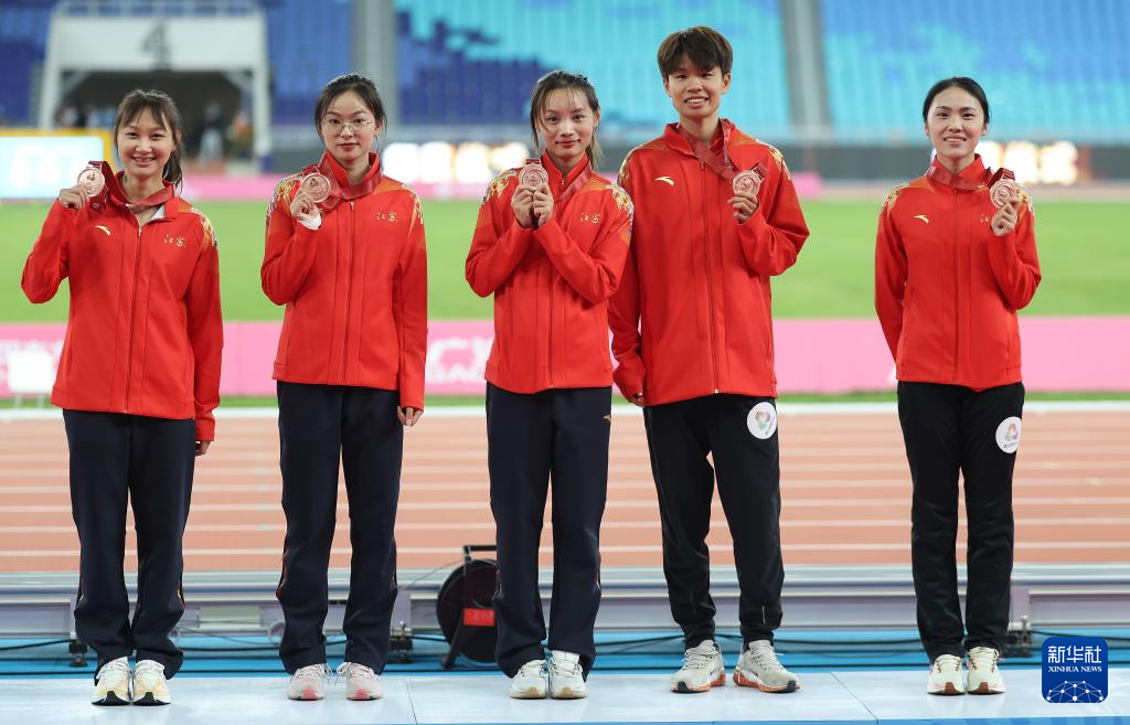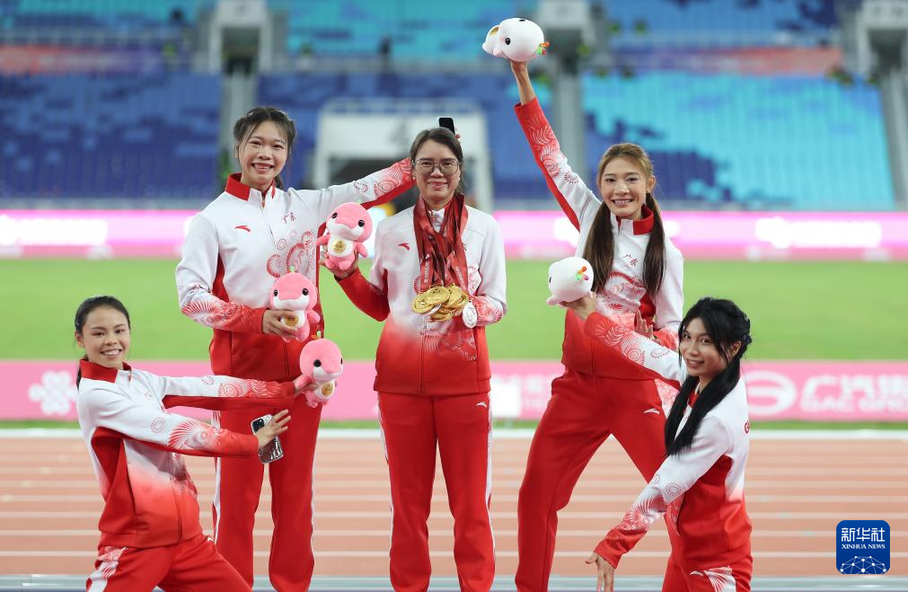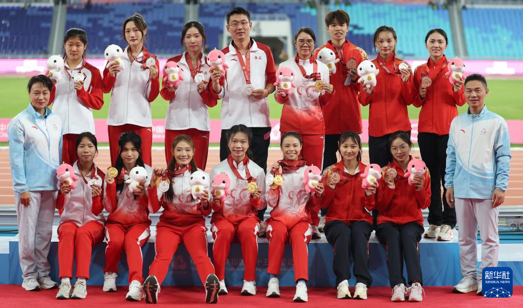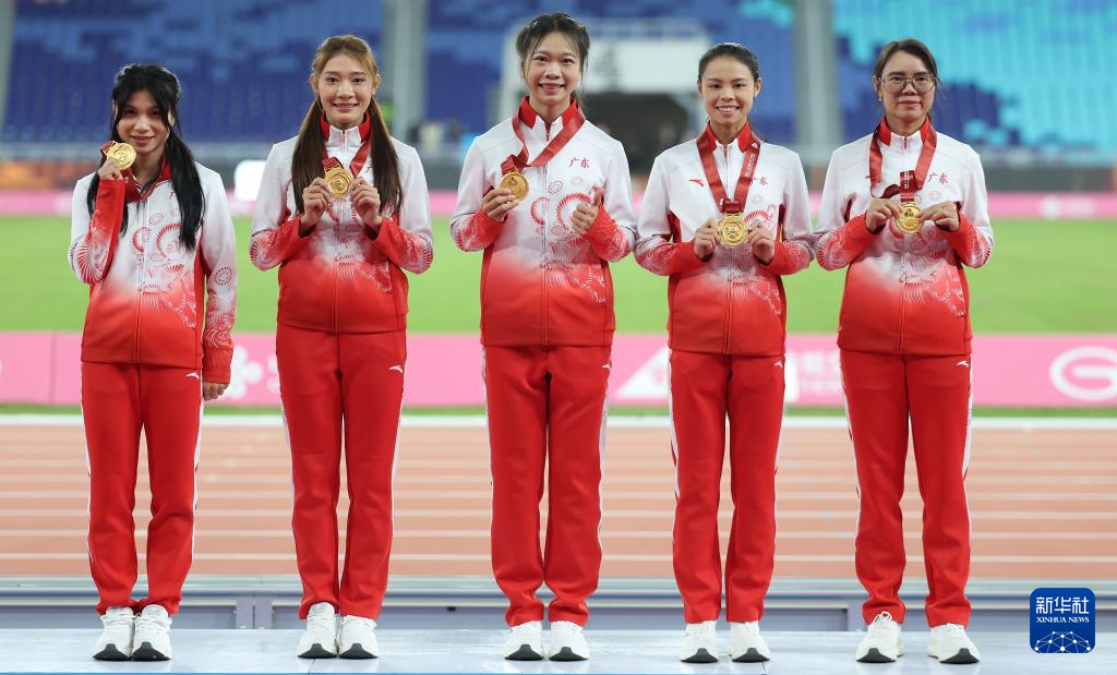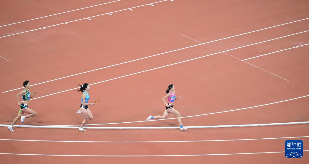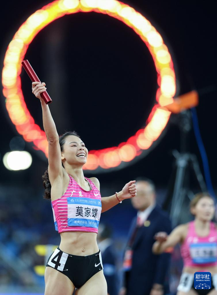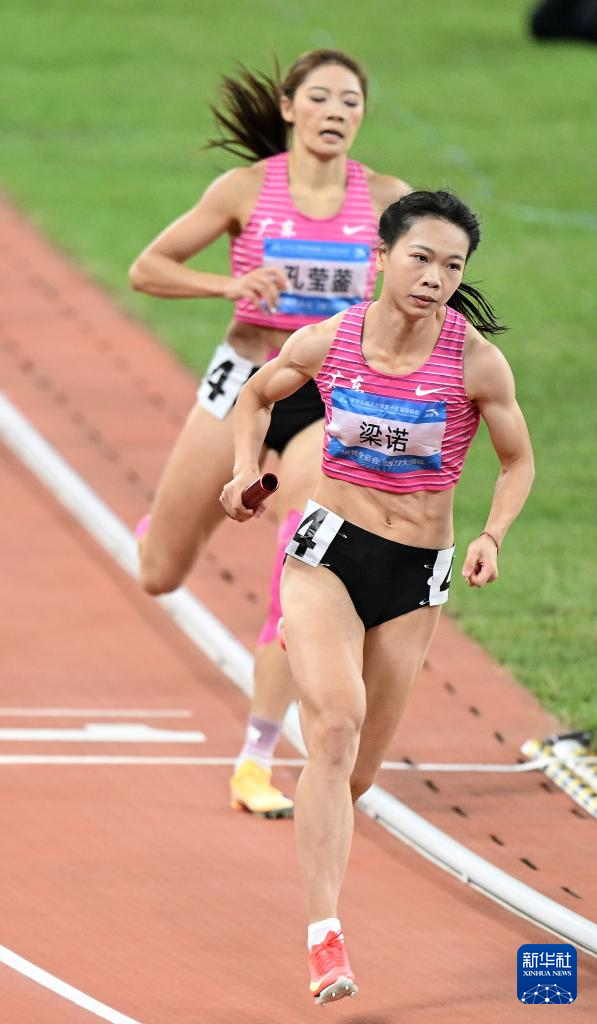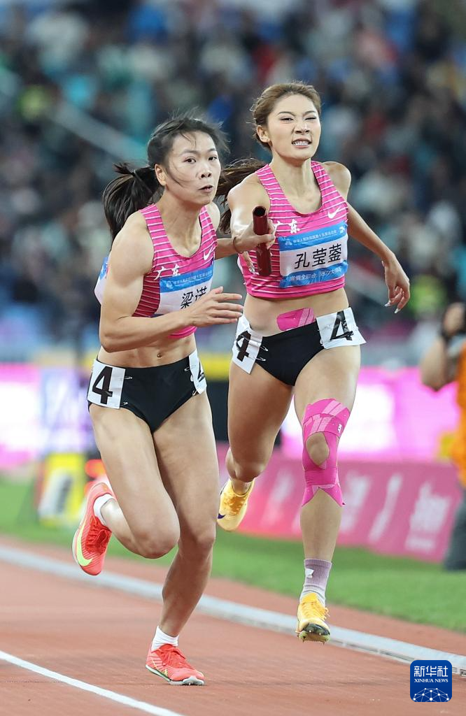 当日,第十五届全国运动会田径项目女子4X400米接力决赛在广州举行。