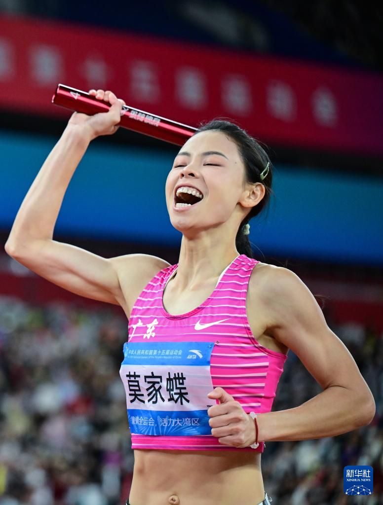 11月20日,广东队选手莫家蝶在比赛中冲线后庆祝。广东队获得冠军。