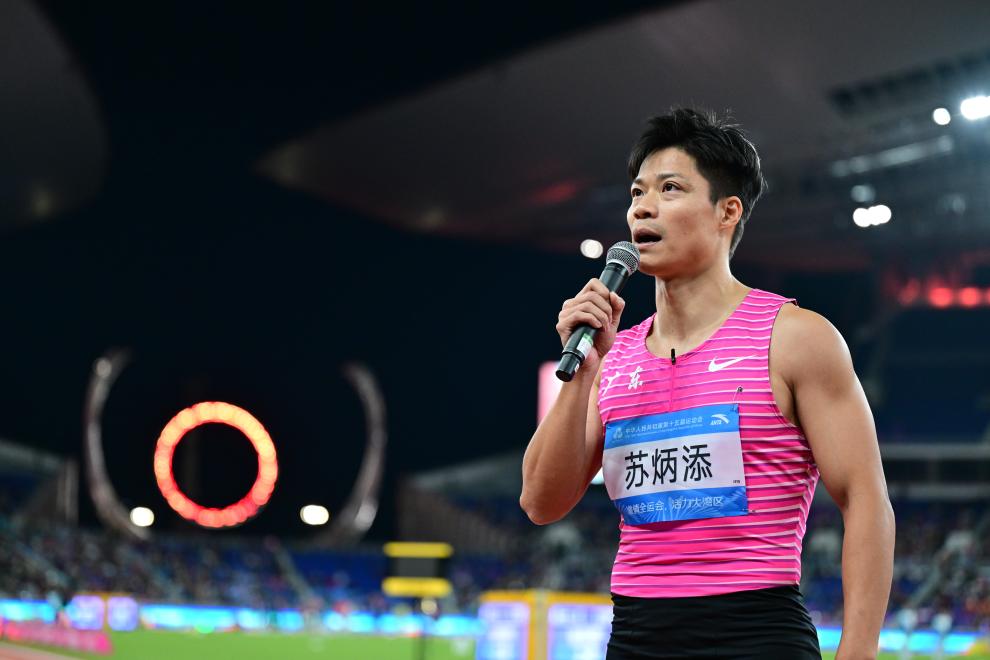 面对自己至今无人打破的亚洲纪录,苏炳添说:“我在役的时候,希望这项运动我是最强的,但是如果我离开了这个舞台,我希望看到有更强的人出现。”