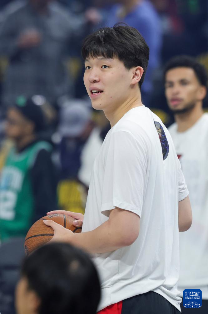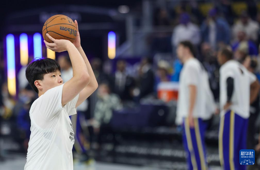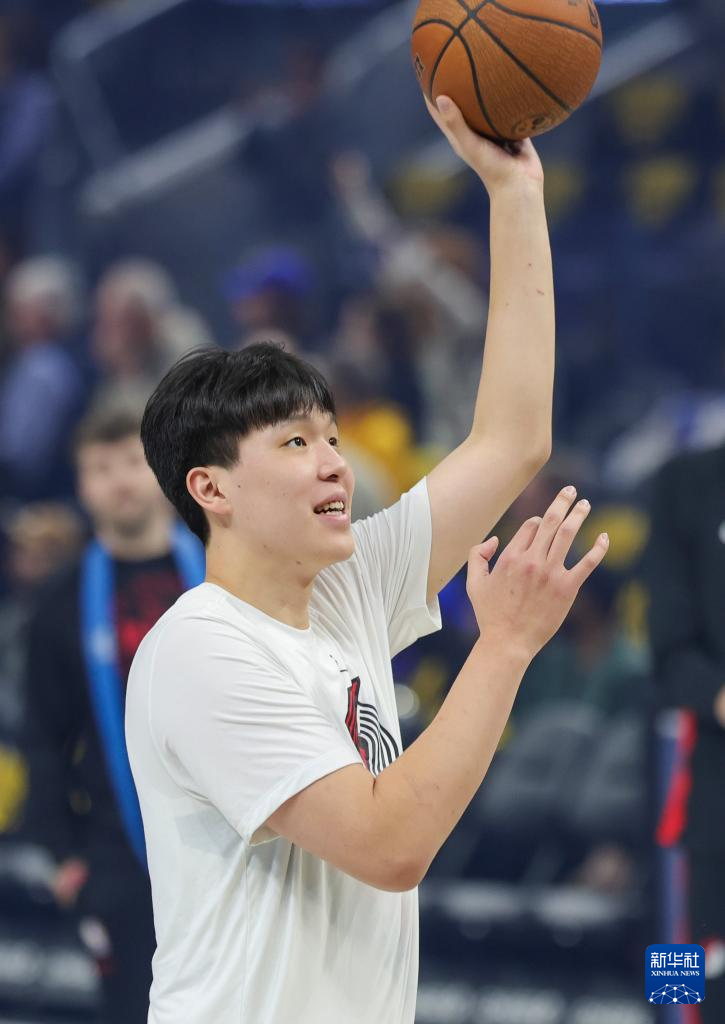 11月21日,开拓者队球员杨瀚森在比赛前热身。