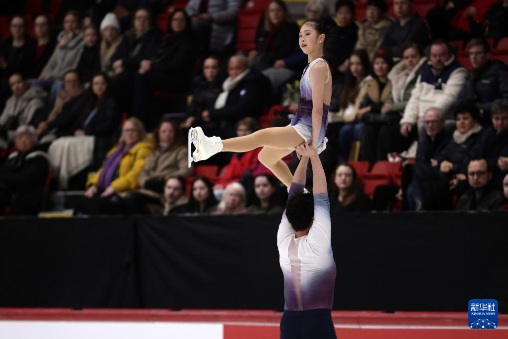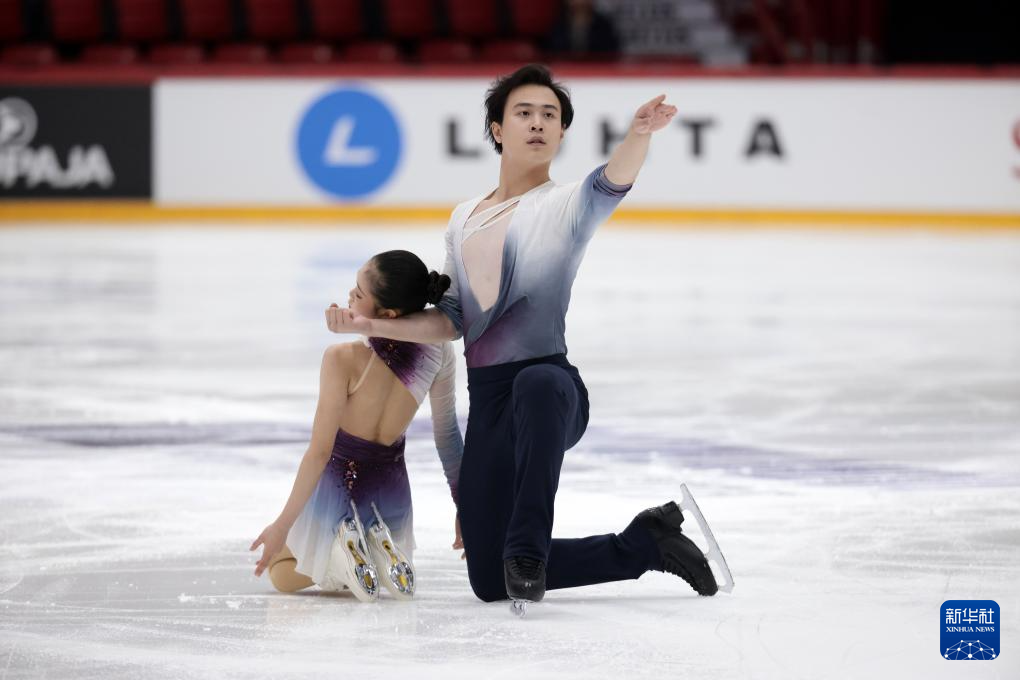 11月22日,中国组合张嘉轩(上)/黄一航在双人滑自由滑比赛中。最终,他们获得第六名。