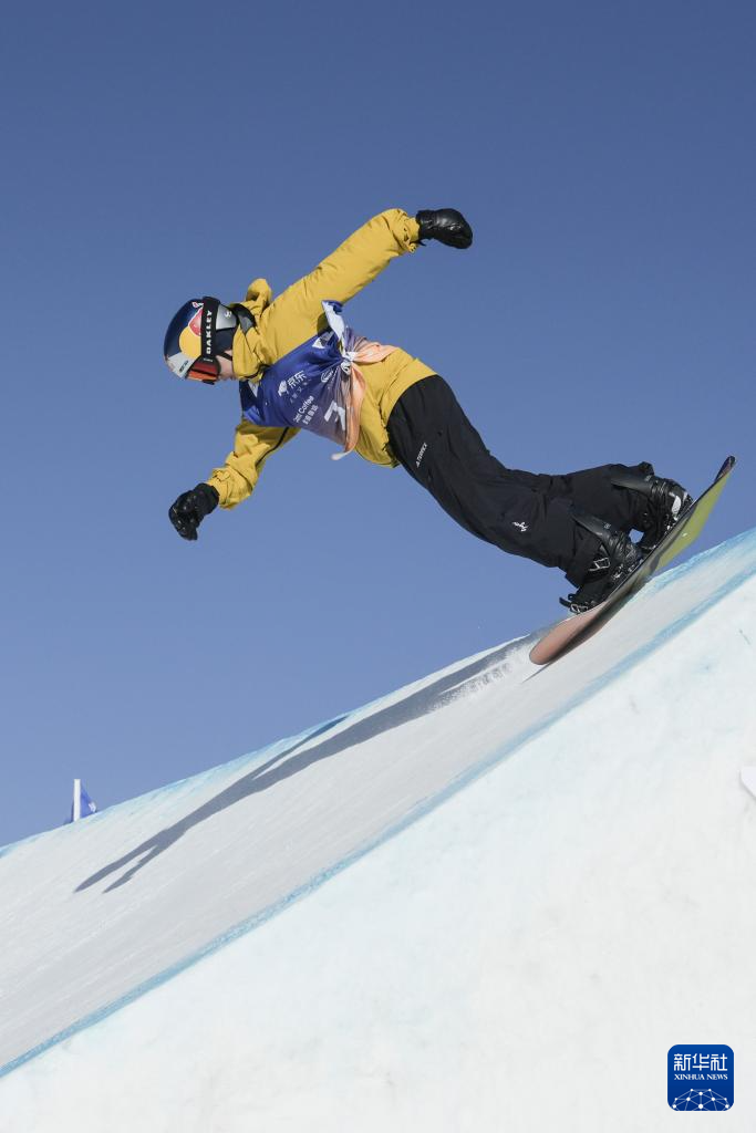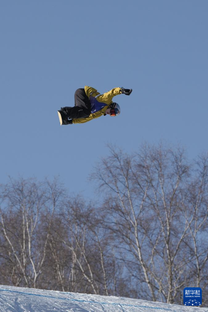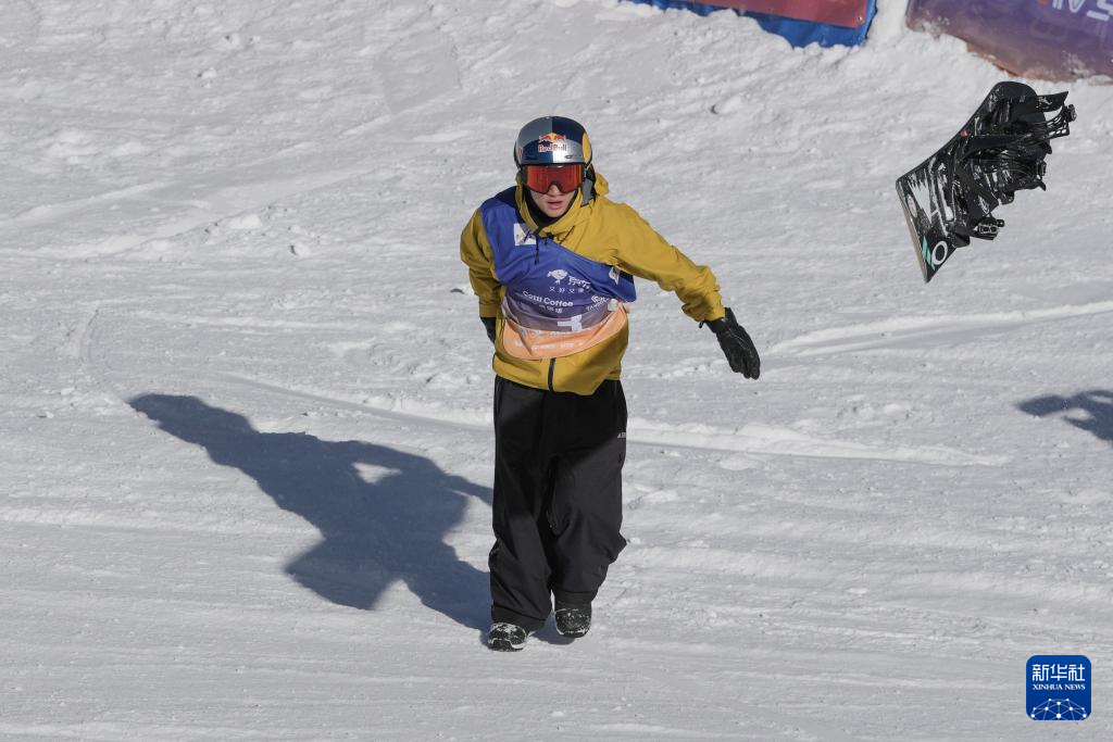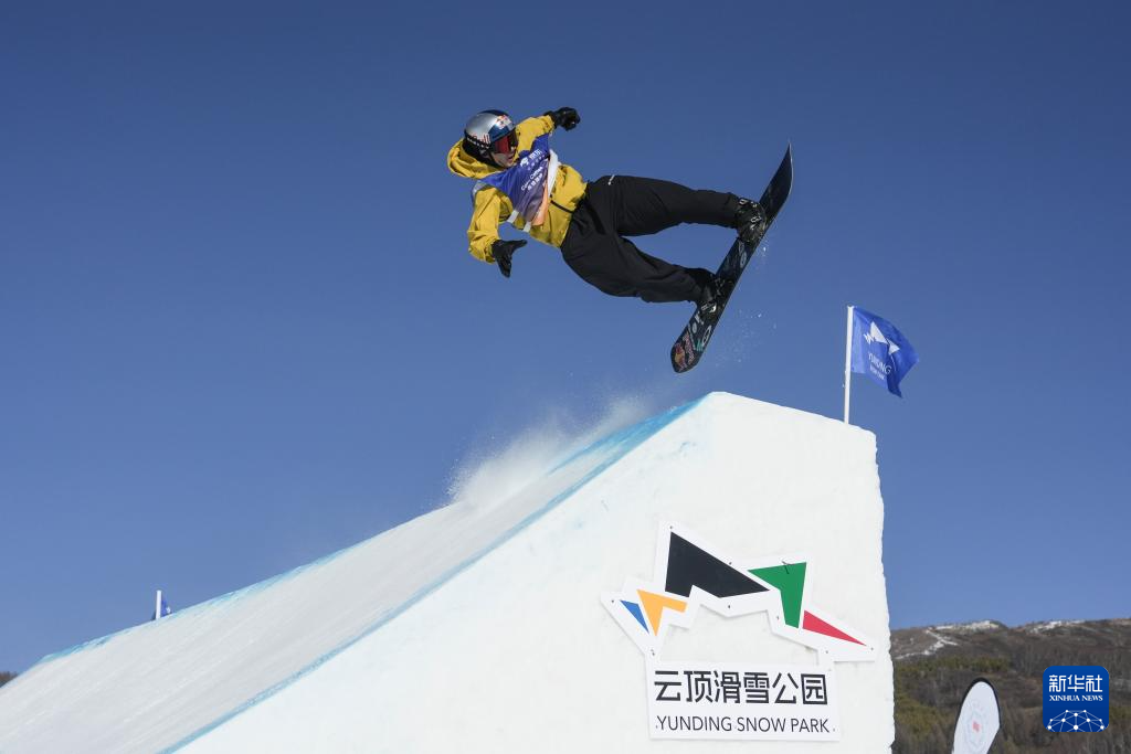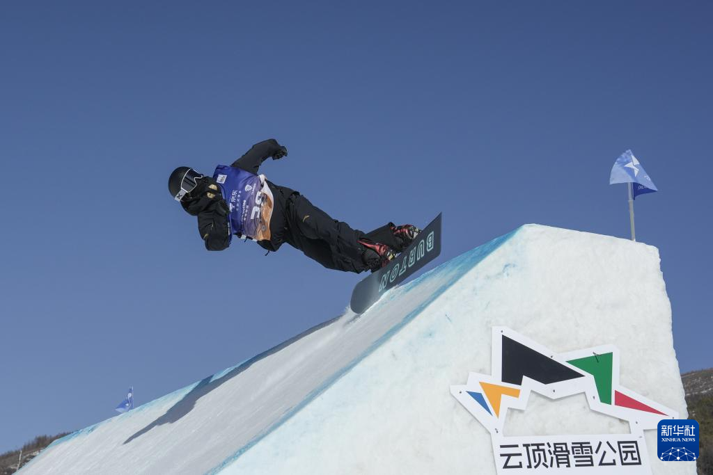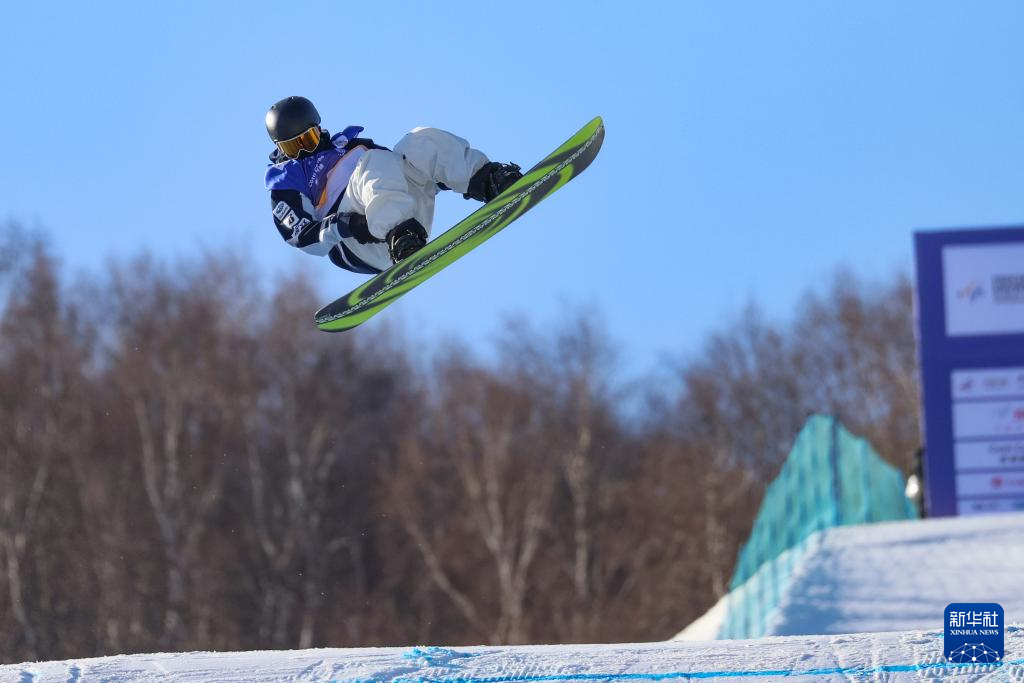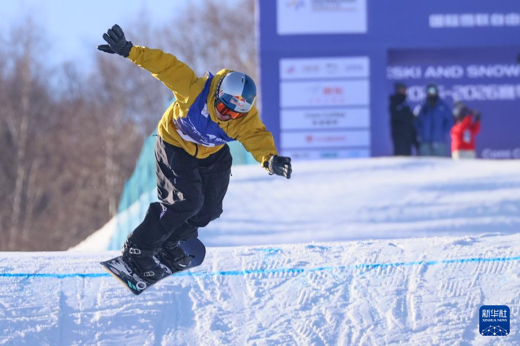 当日,国际雪联大跳台世界杯云顶站单板滑雪男子组决赛在河北省张家口市崇礼区云顶滑雪场进行。