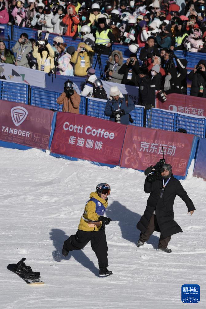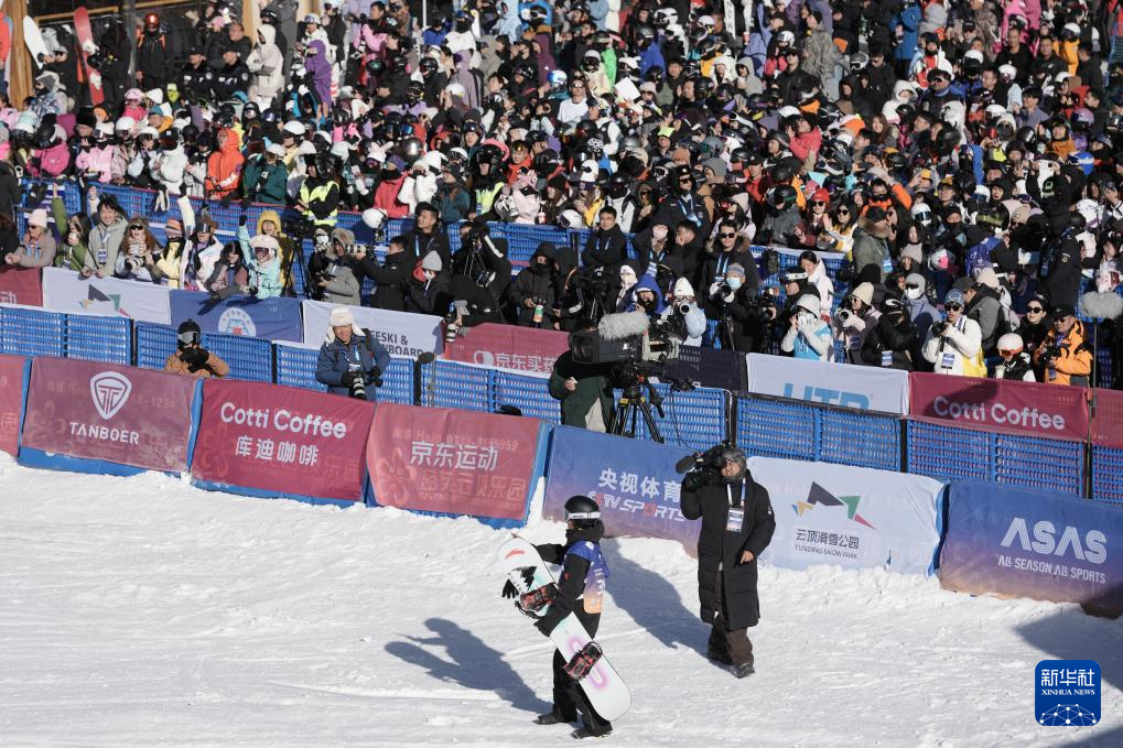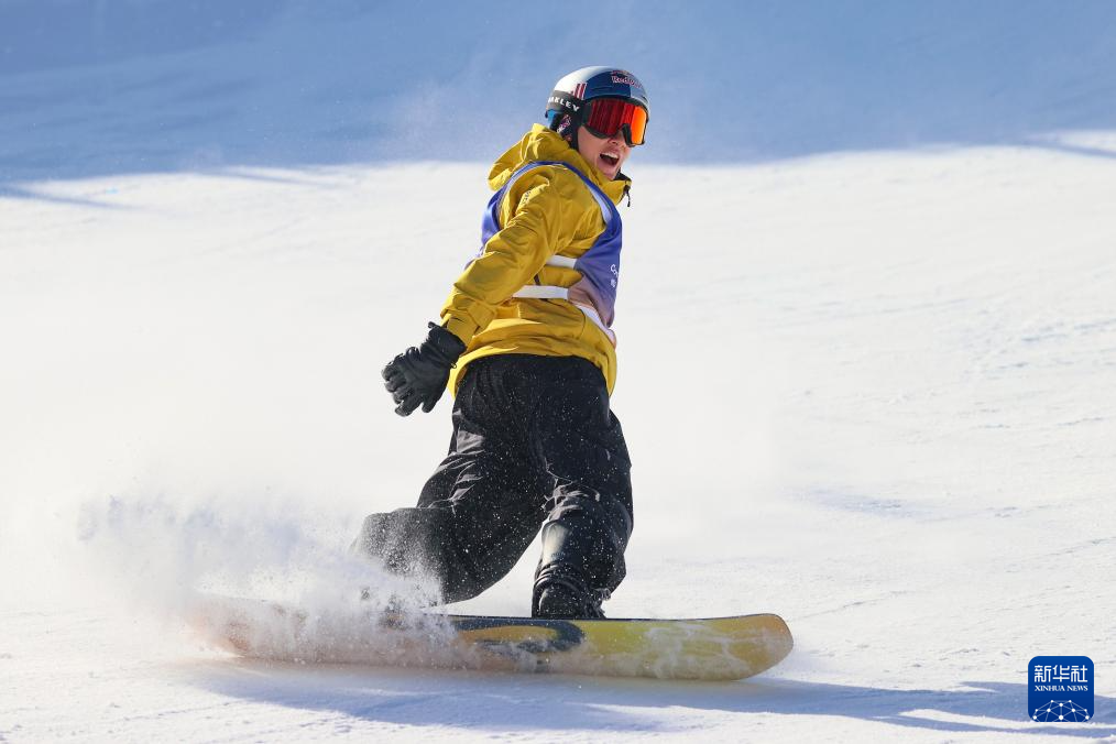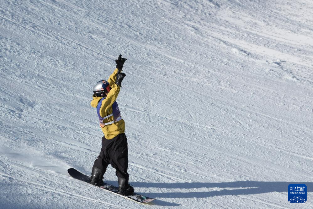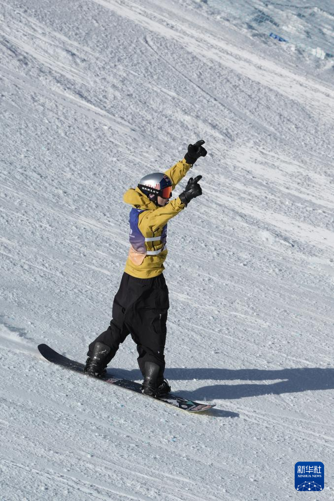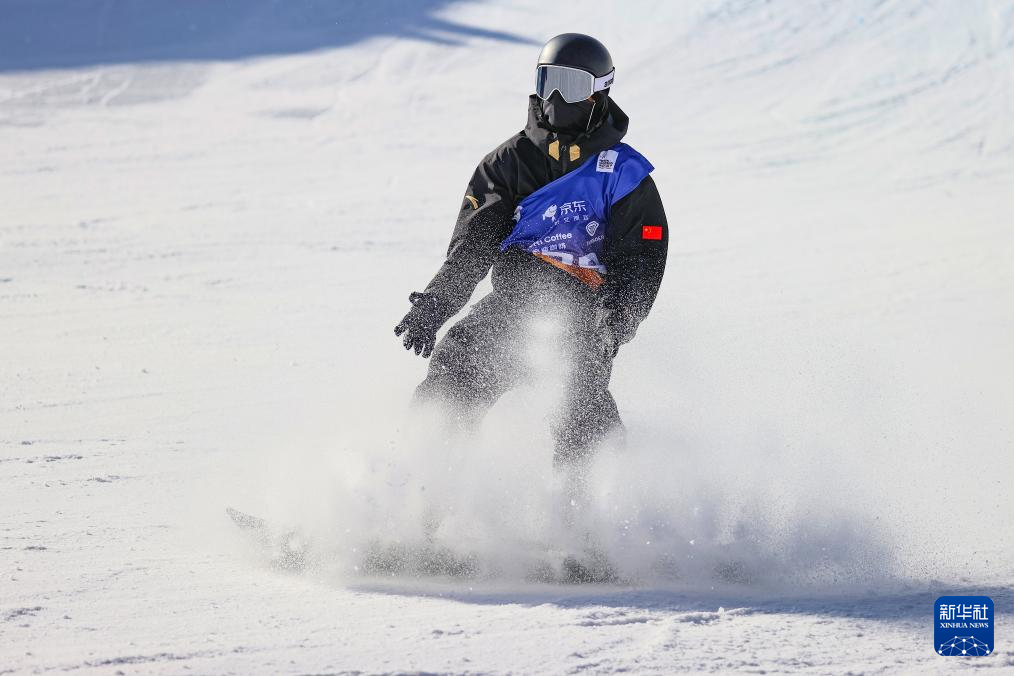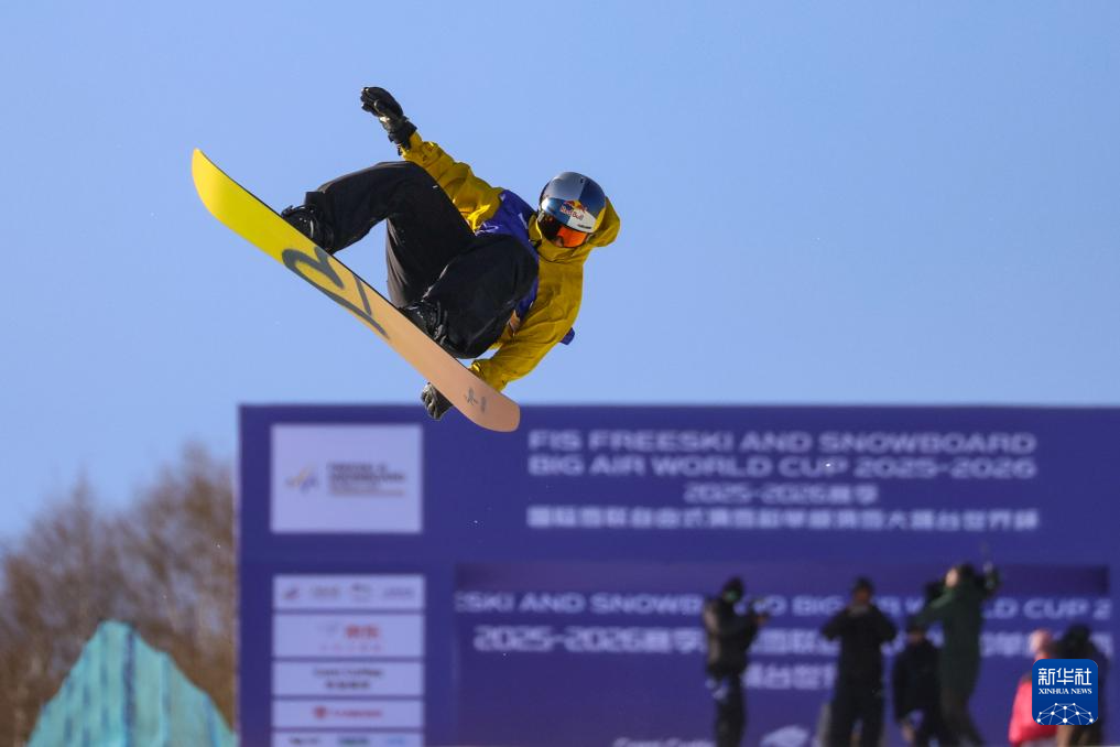 当日,国际雪联大跳台世界杯云顶站单板滑雪男子组决赛在河北省张家口市崇礼区云顶滑雪场进行。