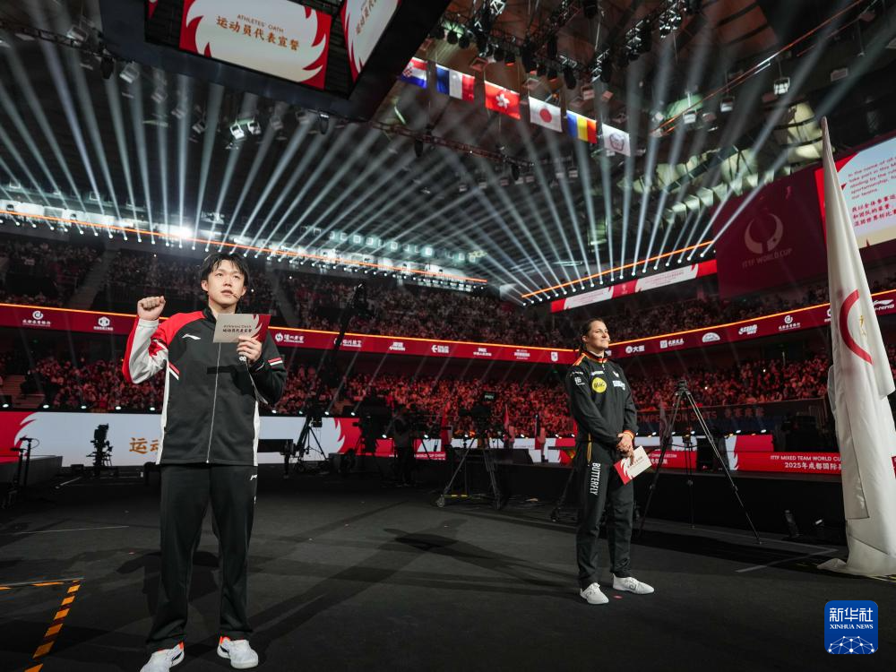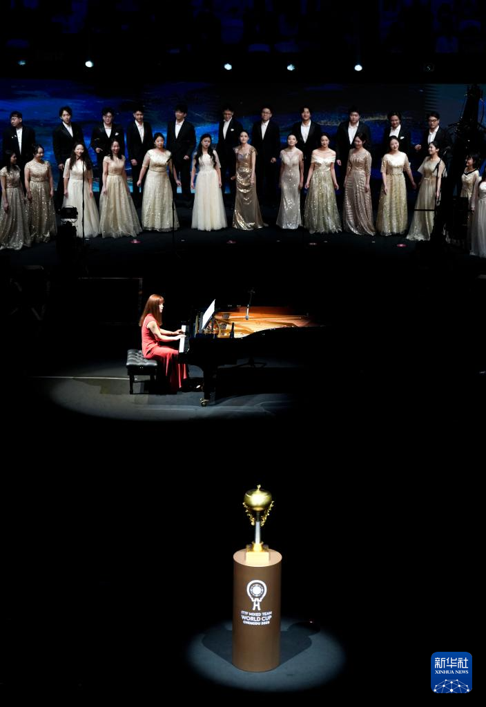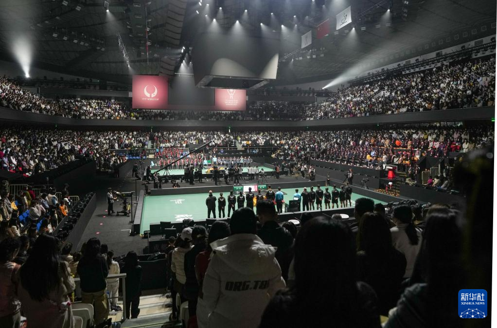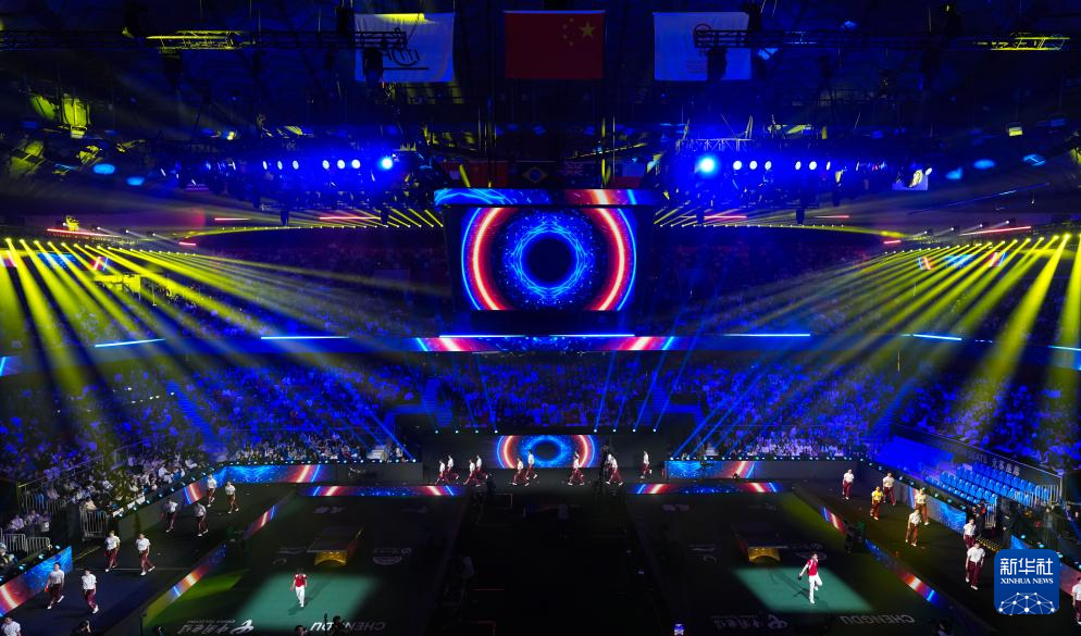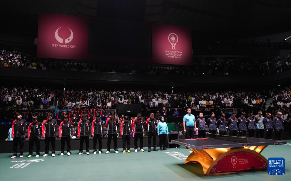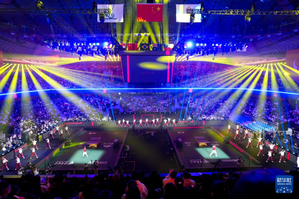 当日,2025年成都国际乒联混合团体世界杯开幕式在四川省体育馆举行。