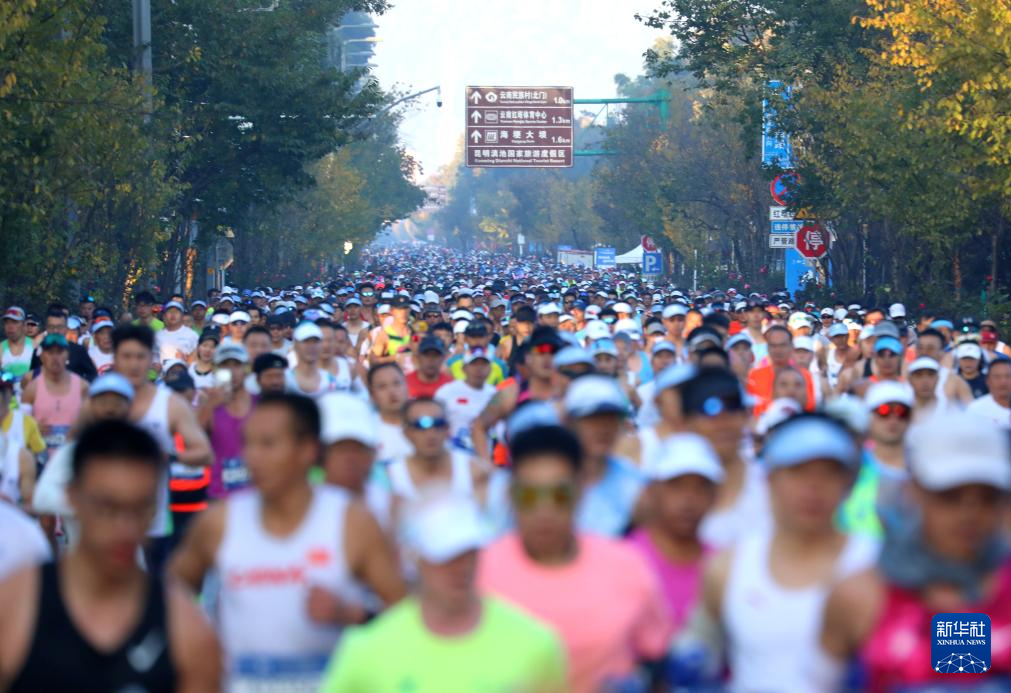 当日,2025年上合昆明马拉松在云南昆明海埂会堂前鸣枪开跑。