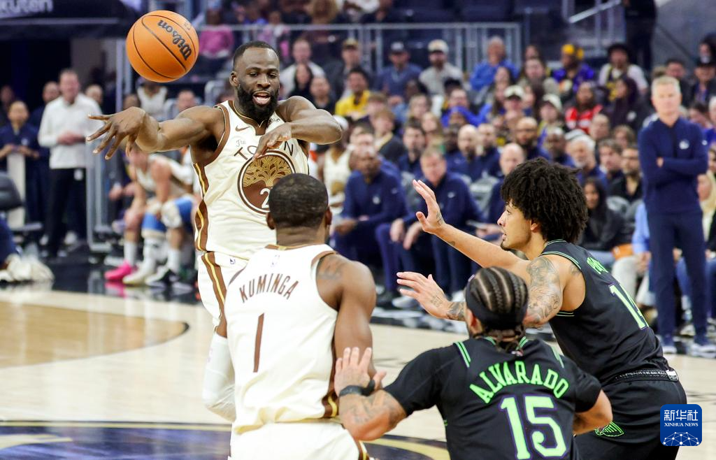11月29日,勇士队球员格林(左上)在比赛中传球。