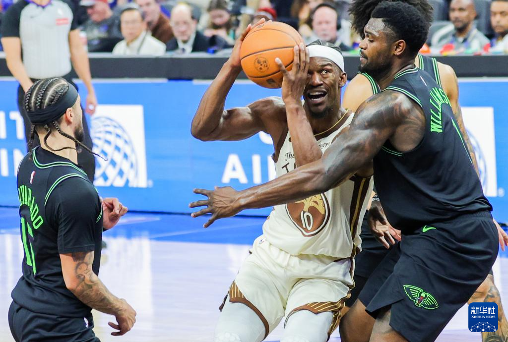 11月29日,勇士队球员巴特勒(左二)在比赛中。