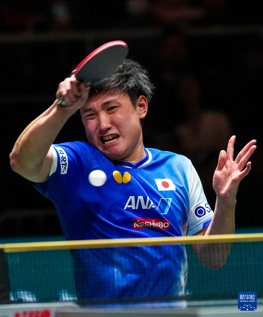 11月30日,日本队选手张本智和在男单比赛中回球。最终,他2比1战胜澳大利亚队选手林文政。