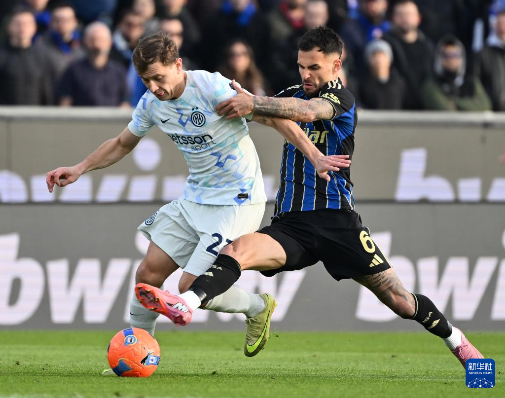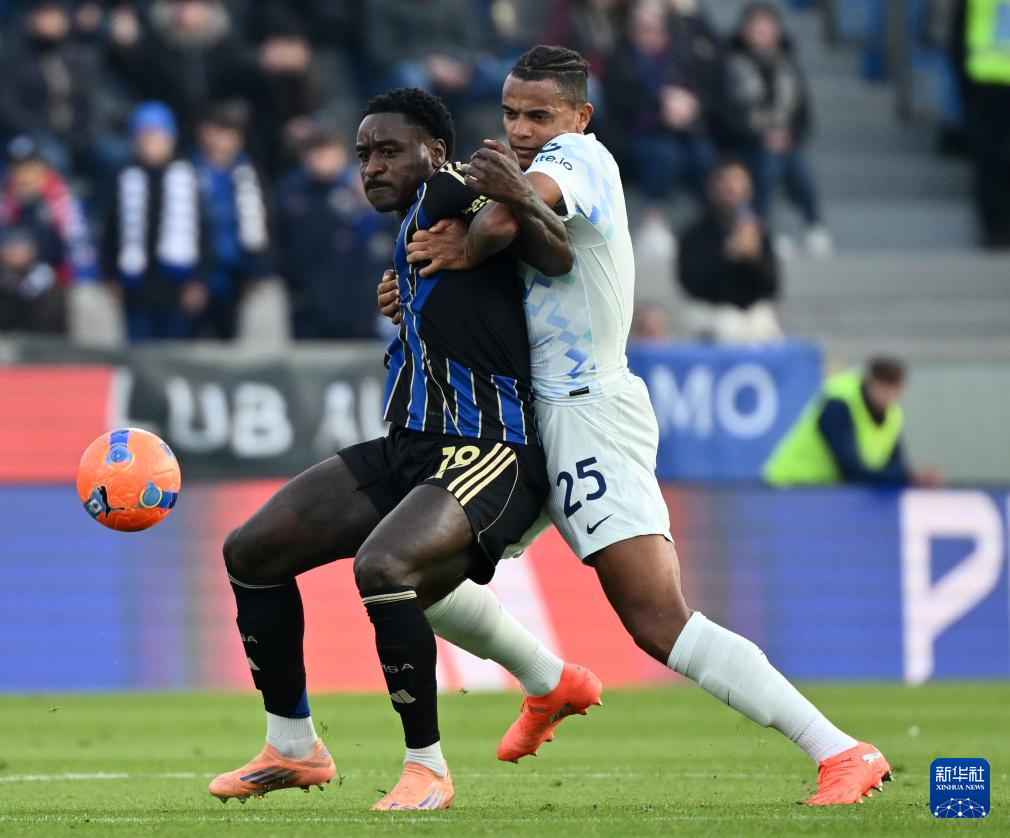 11月30日,国际米兰队球员阿坎吉(右)与比萨队球员恩佐拉在比赛中拼抢。