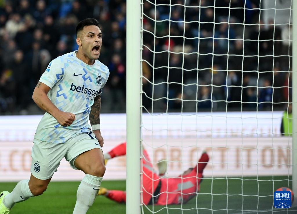 11月30日,国际米兰队球员劳塔罗·马丁内斯在比赛中庆祝进球。