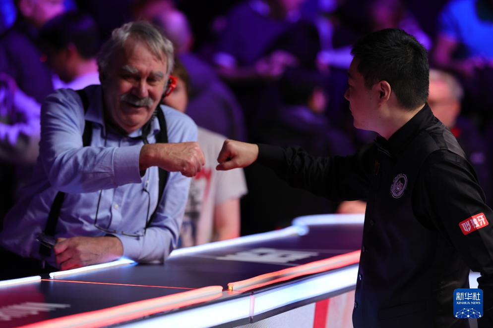 12月1日,丁俊晖(右)在比赛后接受祝贺。