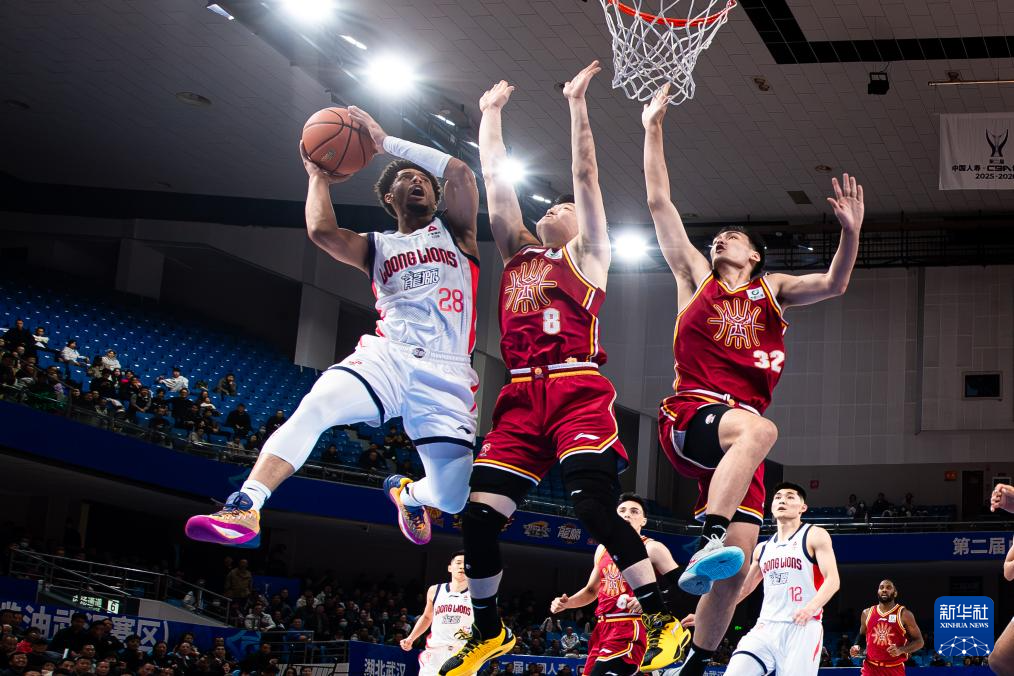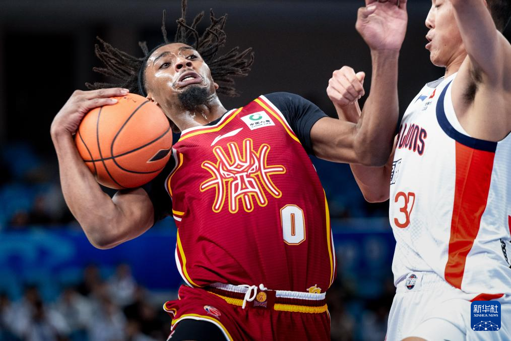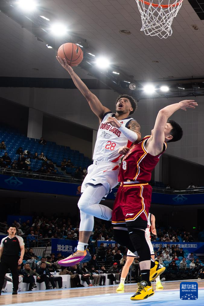 12月3日,山西汾酒队球员黑根斯(左)在比赛中上篮。