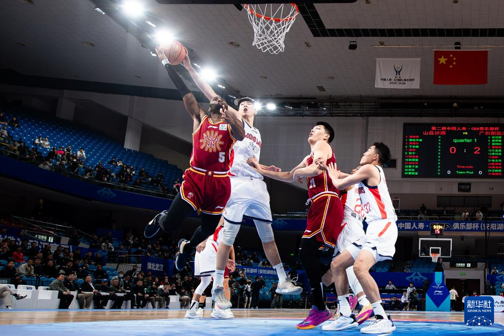 12月3日,广州朗肽海本队球员威金顿(左)在比赛中上篮。