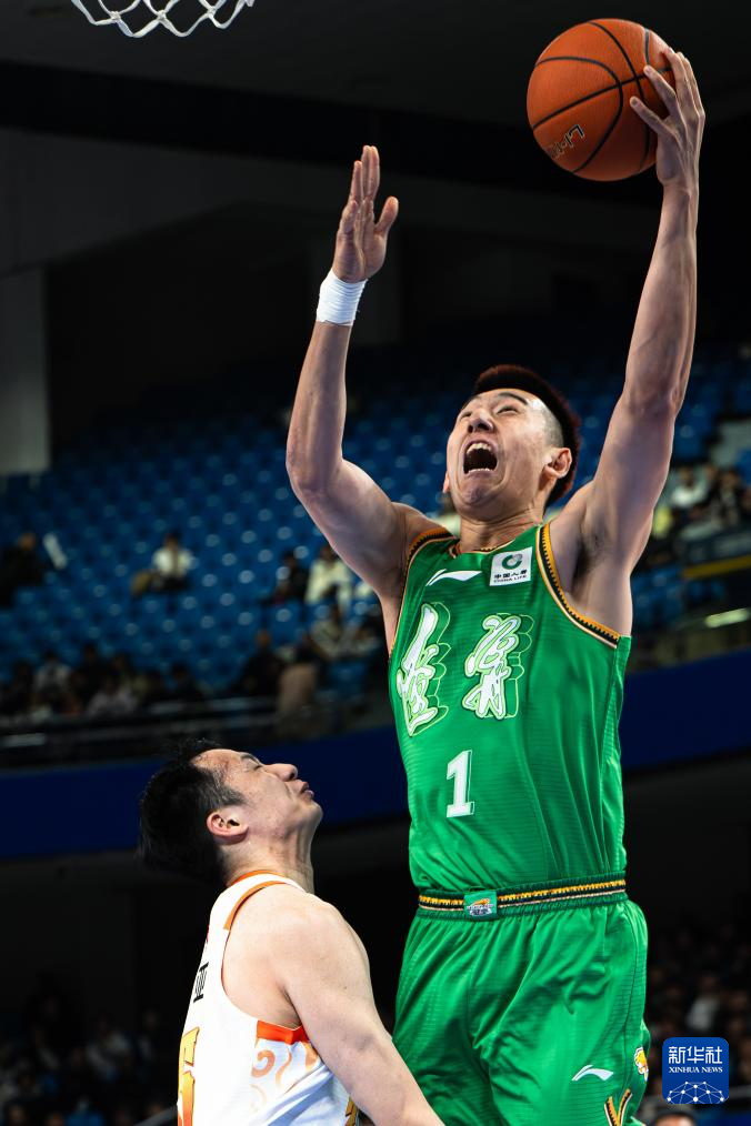 12月3日,辽宁本钢队球员付豪(右)在比赛中上篮。