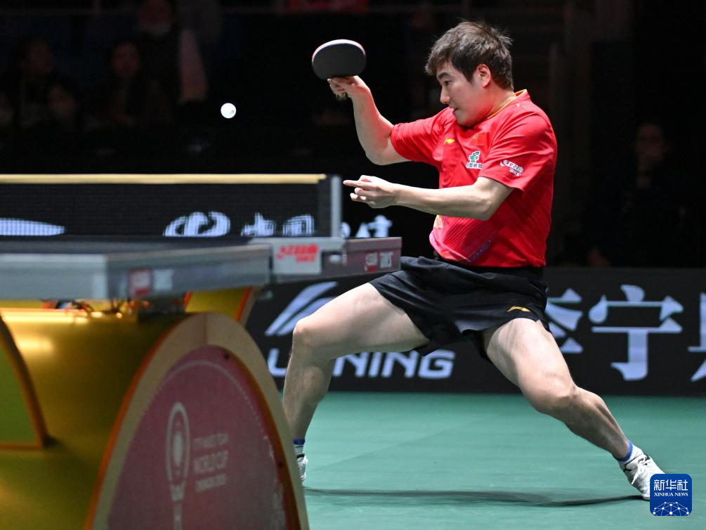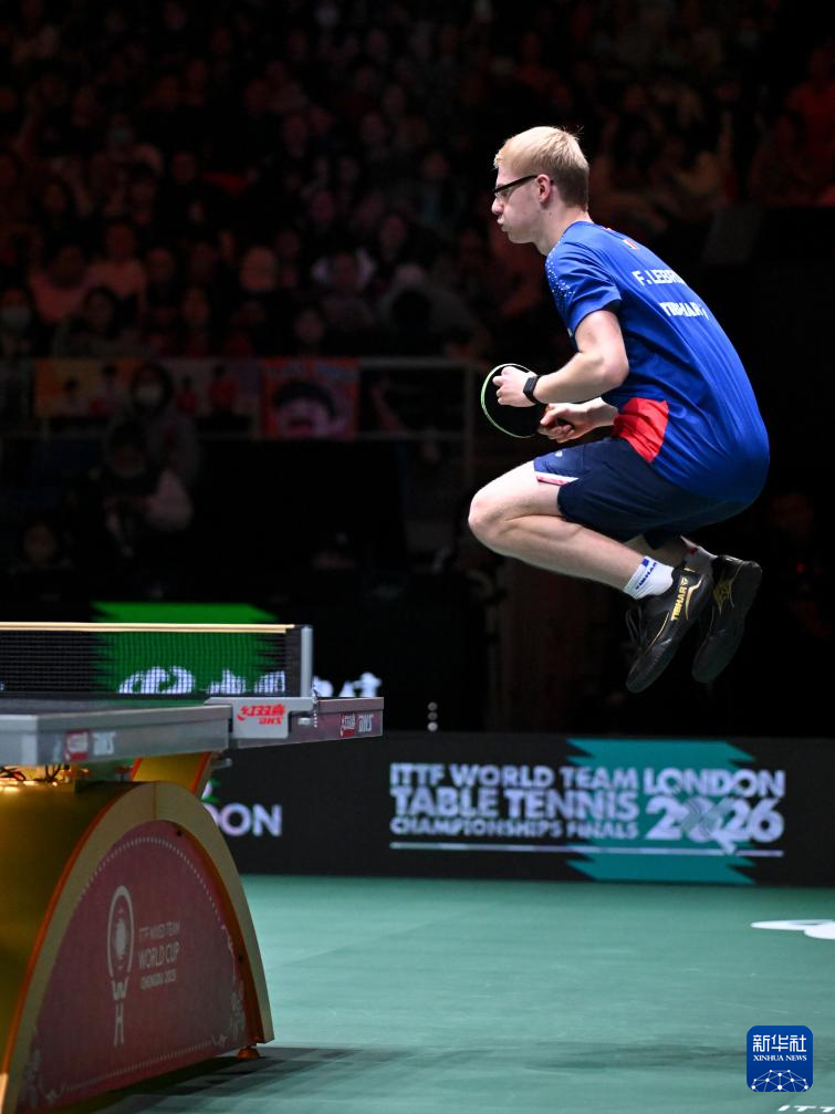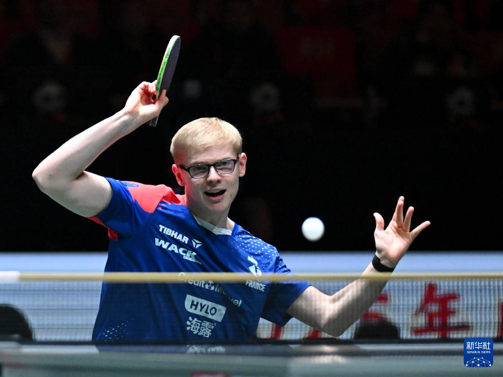 12月4日,法国队选手费利克斯·勒布伦在男单比赛中。最终,他2比1战胜中国队选手梁靖崑。