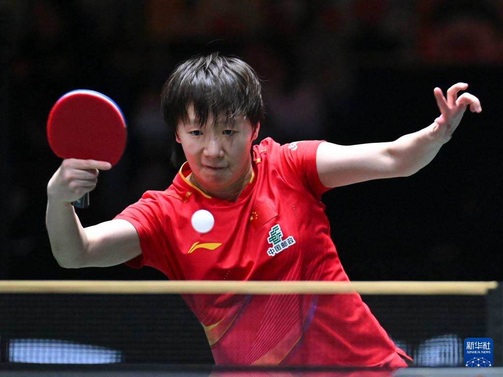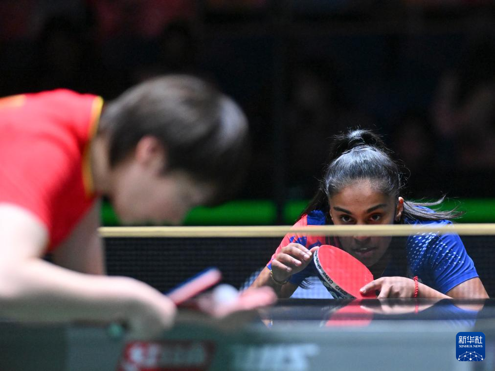 12月4日,中国队选手王曼昱在女单比赛中。她3比0战胜法国队选手普利蒂卡·帕瓦德。