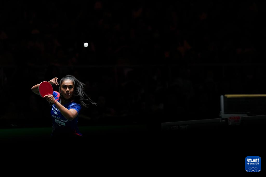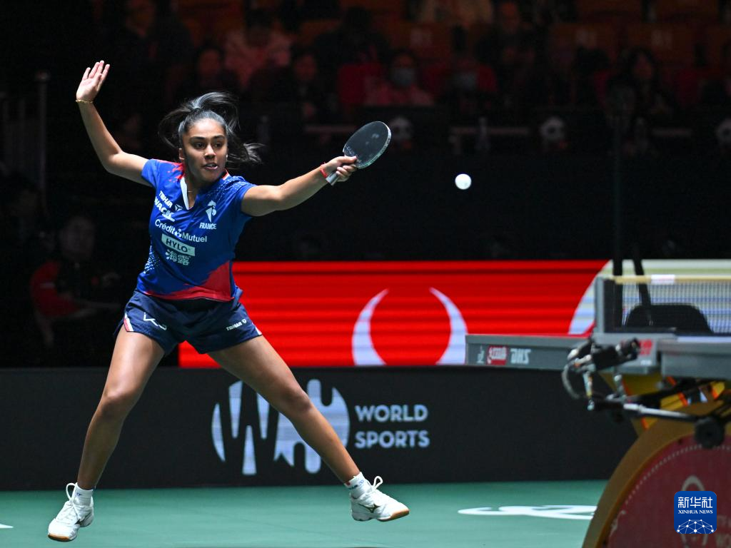 12月4日,法国队选手普利蒂卡·帕瓦德在女单比赛中。她0比3不敌中国队选手王曼昱。