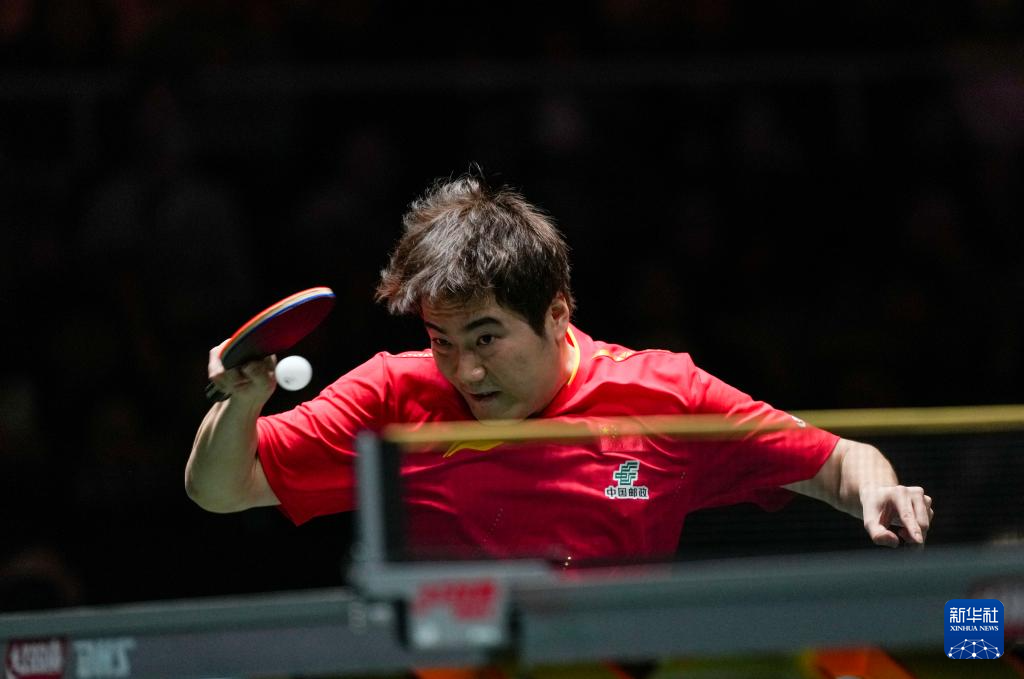 12月4日,中国队选手梁靖崑在男单比赛中。最终,他1比2不敌法国队选手费利克斯·勒布伦。